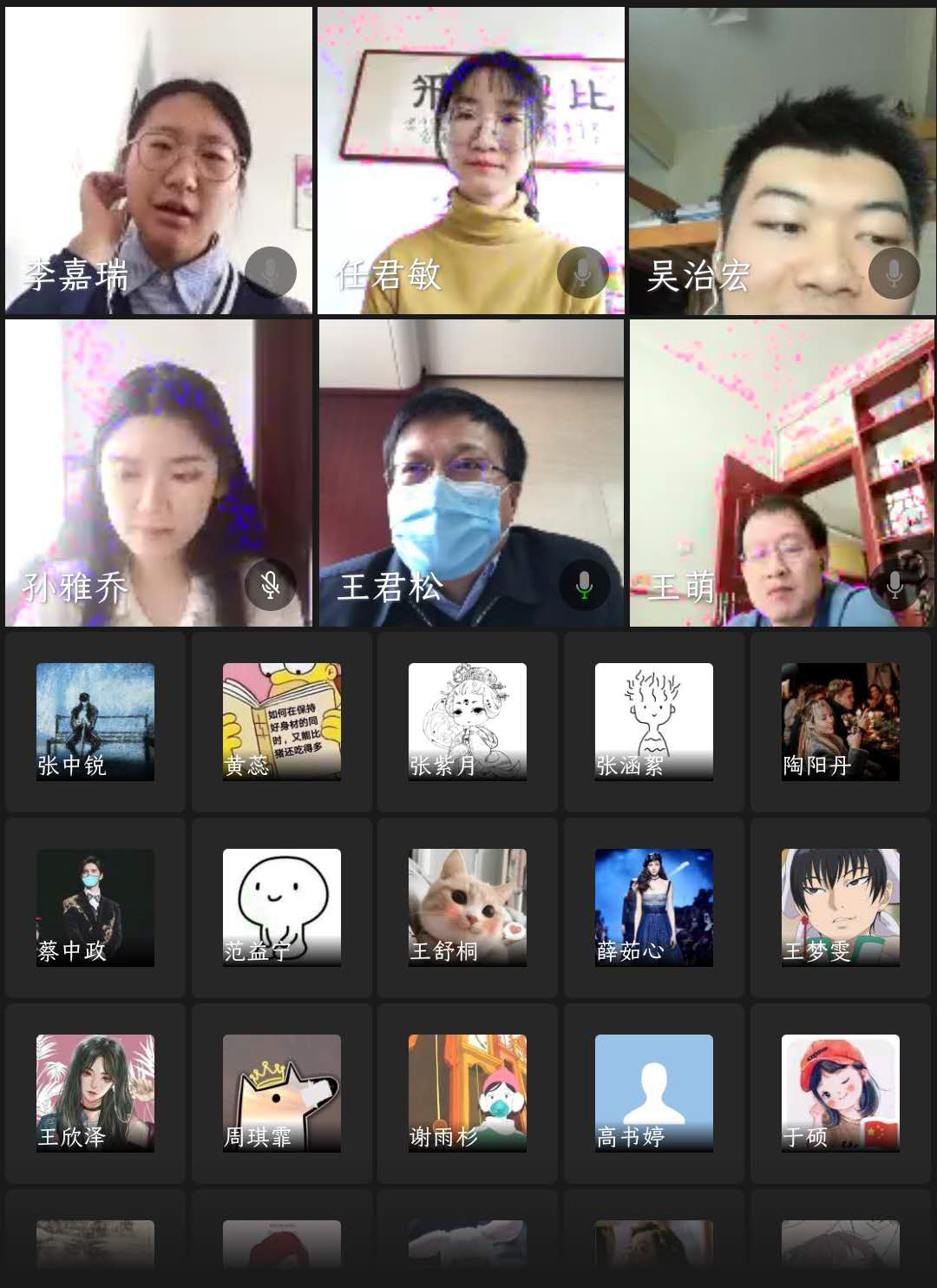 3月5日下午,248cc永利集团2019级中文基地班召开“落实线上思想教育,关注疫期心理健康”线上主题班会。校党委副书记王君松参加班会并与同学们进行了亲切交流。院党委副书记王萌、辅导员孙雅乔以及中文基地班全体同学参加本次班会。班会由副班长任君敏主持。