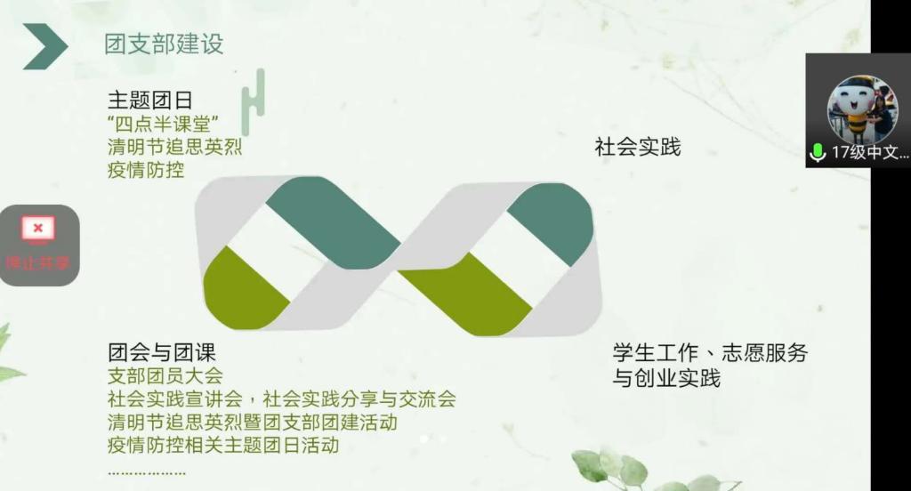 本次会议按照线上抽签顺序进行答辩,并通过在线无记名打分的方式对各个团支部的答辩情况进行评分。各支部围绕班子建设、团员管理、组织运行、思想建设及特色团支部活动等方面展开发言,充分展示了过去一年中各团支部的工作成果、学习状况与精神面貌。