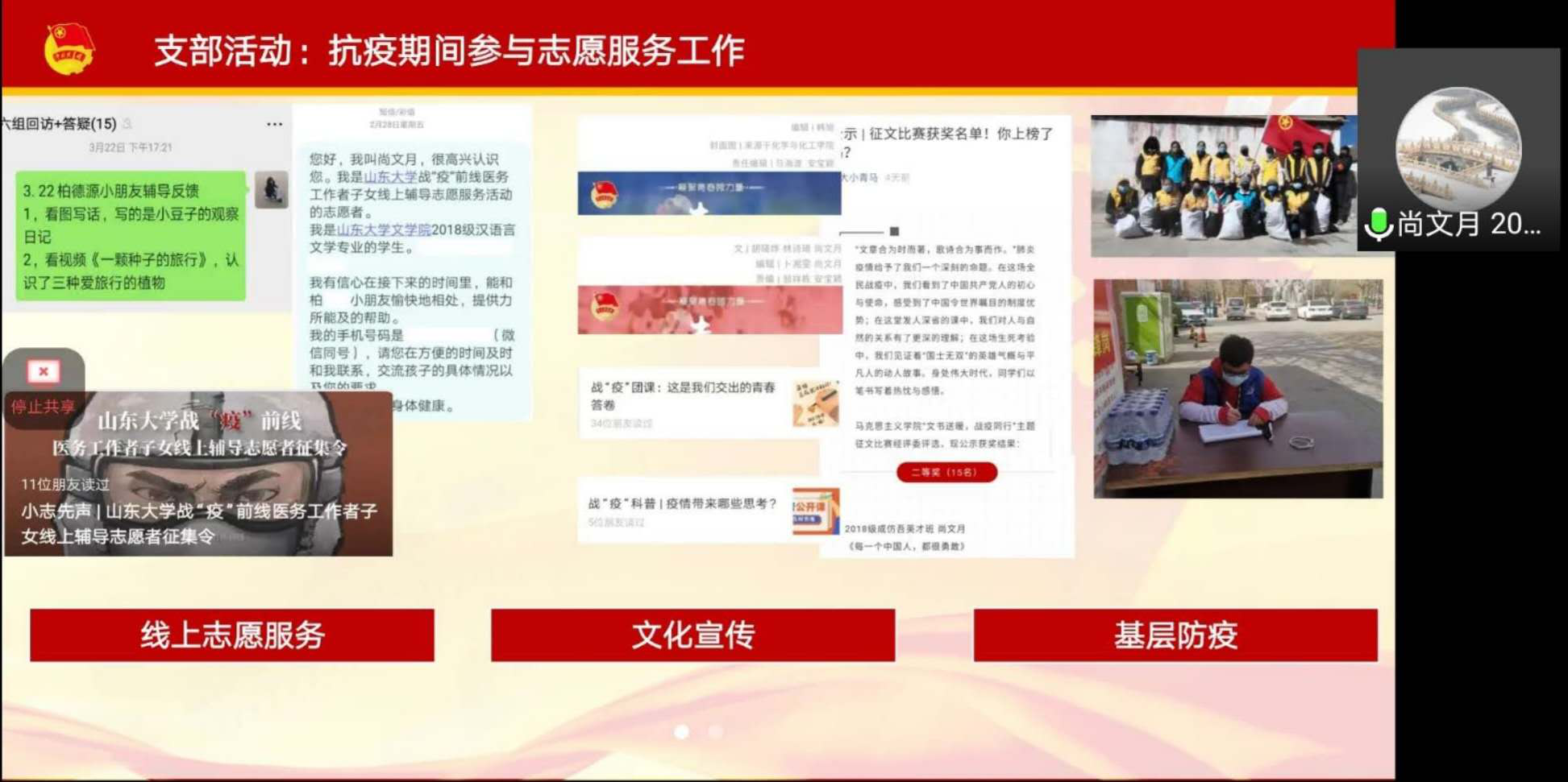 4月5日下午,248cc永利集团于线上开展了2020年度团支部“达标升级”答辩分享会。会议由248cc永利集团团委副书记苏靖雯主持,2016级辅导员李国强、2019级辅导员孙雅乔、2016级学生代表王宇超及各团支部评选代表参加本次答辩分享会。