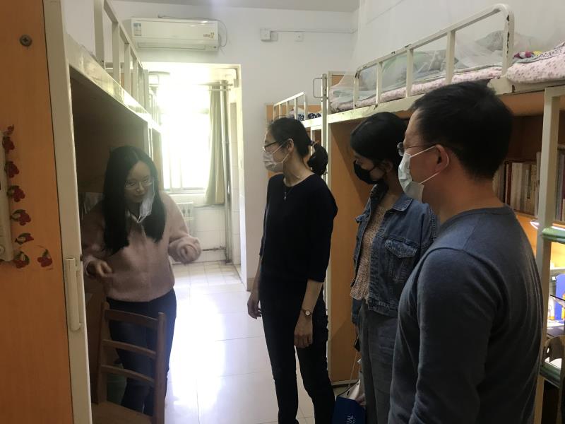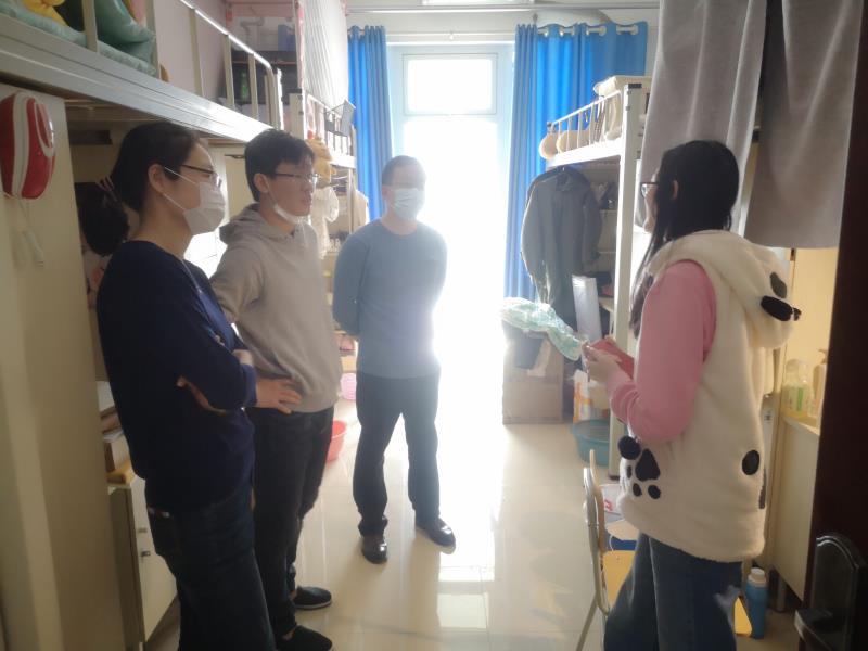 248cc永利集团共有11名留校学生,其中10名研究生,1名本科生。老师们辗转7栋学生宿舍楼,一一详细询问了留校学生在校期间的学习生活情况,对同学们遵守规定、配合管理、勤奋学习的行为表示了肯定,并叮嘱学生疫情期间也应加强锻炼、注意饮食与作息。同时倾听了同学们目前所面临的问题与困难,及时解答并予以帮助,安抚部分学生的焦躁情绪,鼓励同学们积极调整心态,利用在校学习时间充实自己,与家人、老师、同学多沟通多联系,保持健康愉悦的学习生活状态,攻坚克难,共同度过这段特殊的时光。