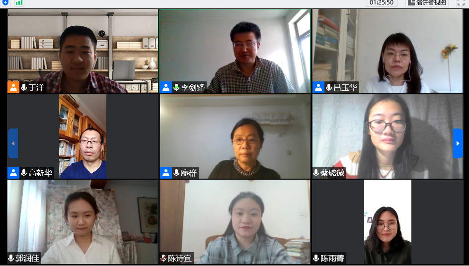 答辩形式的变化,并没有影响到答辩质量。文学院全体指导教师充分利用微信、邮箱等通讯手段,与学生保持密切沟通,关注毕业论文的写作进度。在教务老师的悉心指导下,同学们有条不紊地完成了线上答辩的预备工作,包括对毕业论文修改与查重、提前确定并下载网络答辩相应的主平台和备用平台等。