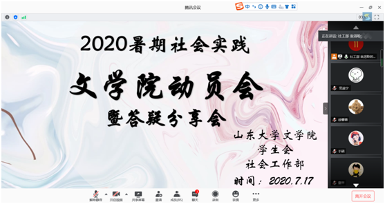 为落实疫情防控工作下我校对于暑期社会实践的各项要求,顺利开展暑期社会实践工作,248cc永利集团学生会社工部于7月18日晚上七点在腾讯会议平台举办了“2020暑期社会实践动员会暨答疑分享会”。248cc永利集团团委孙雅乔老师以及2019级本科生参加会议。会议由院会社工部部长翁溶聆主持。
