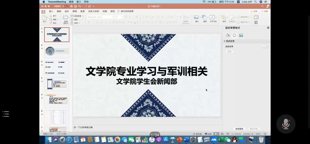 为帮助新生尽快了解大学生活、引导新生顺利适应新环境,文学院与国际教育学院学生会于9月3日下午3点在腾讯会议平台共同举办了2020届新生线上答疑活动。本次活动由文院学生会主席吴一凡主持,国际教育学院迎新代表与文院学生会成员担任主讲同学,近百名2020届新生参与会议。