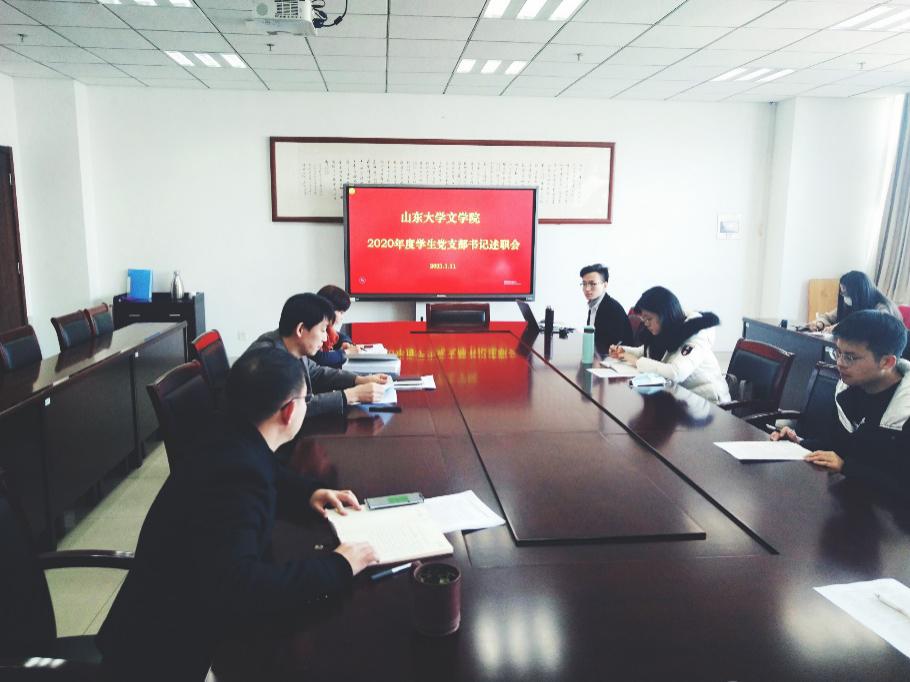 会议按照“一述一评”的形式进行。5位教工党支部书记和8位学生党支部书记,围绕个人履职情况、当前存在问题以及下一步工作思路这三个方面对各个支部一年的工作进行汇报。各位支部书记坚持以习近平新时代中国特色社会主义思想为指导,紧密结合教学科研工作和学生学习生活实际,着眼于基层党组织战斗堡垒作用和党员先锋模范作用发挥,分别汇报了所属党支部在加强理论学习,发挥思想引领作用,党员教育管理,党员发展等方面的主要做法和工作成效,并认真分析了当前支部存在的主要问题,提出下一年的整改措施和工作计划。张帅和王萌分别对教师支部书记和学生支部书记的工作情况进行了逐一点评。他们希望学院各个基层支部能够认真对标高校基层党支部“七个有力”的建设标准,严格落实“两学一做”学习教育常态化、制度化,建设规范化党支部,发挥好党员的先锋模范作用和党支部的战斗堡垒作用。