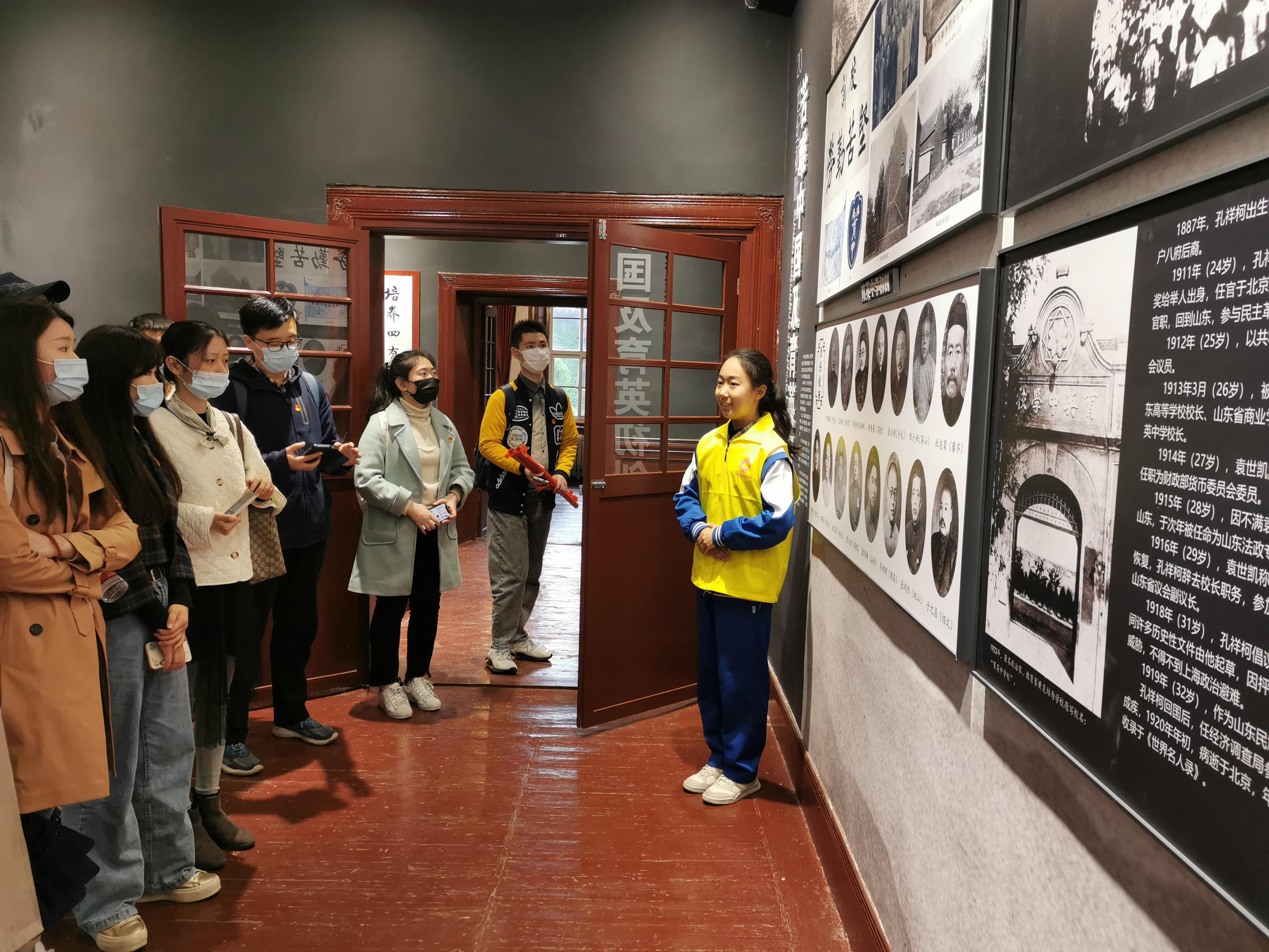 下午3时,支部党员一行来到了中国社会主义青年团济南地方团组织的成立地点——济南市育英中学。在育英中学马晓雪老师的带领下,党员们来到位于校园中的山东省建团纪念馆进行参观学习。纪念馆共展现了“苦难中国及育英初创”“五四运动与中国共产党成立”“山东青年团的创建”“跟着党在土地革命战争中斗争”“山东青年抗日救亡运动”“解放战争时期的山东青年工作”等六个历史时期中山东党团发展的光辉历史。在育英中学学生讲解员的引导下,党员们通过场景还原、团史展览等多种形式,全面地了解了在山东“五四运动”前后,中国社会主义青年团山东地方团成立、斗争、革命运动的光辉历史,并通过认真观摩馆内的陈列文物和图片史料,回顾了山东共青团初创、成长、发展的艰辛历程。