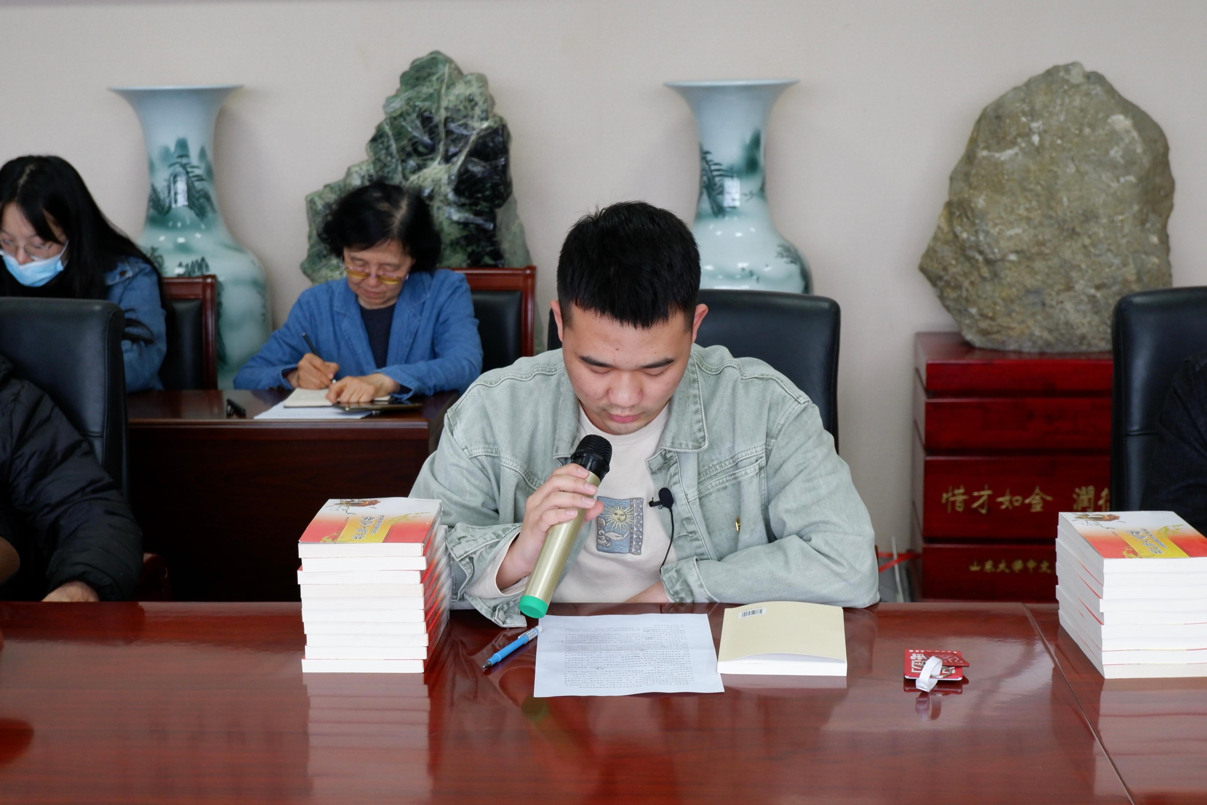 接着,王延晞教授向与会党员赠送其签名的著作《共产党人之歌》。这本书采用了说唱歌谣体,内容朴实活泼,情感真挚自然,显示出了王延晞的群众眼光。收到赠书的学生党员受到老党员同志的精神感染,更坚定了入党的初心,加深了对党光荣历程的认识。
