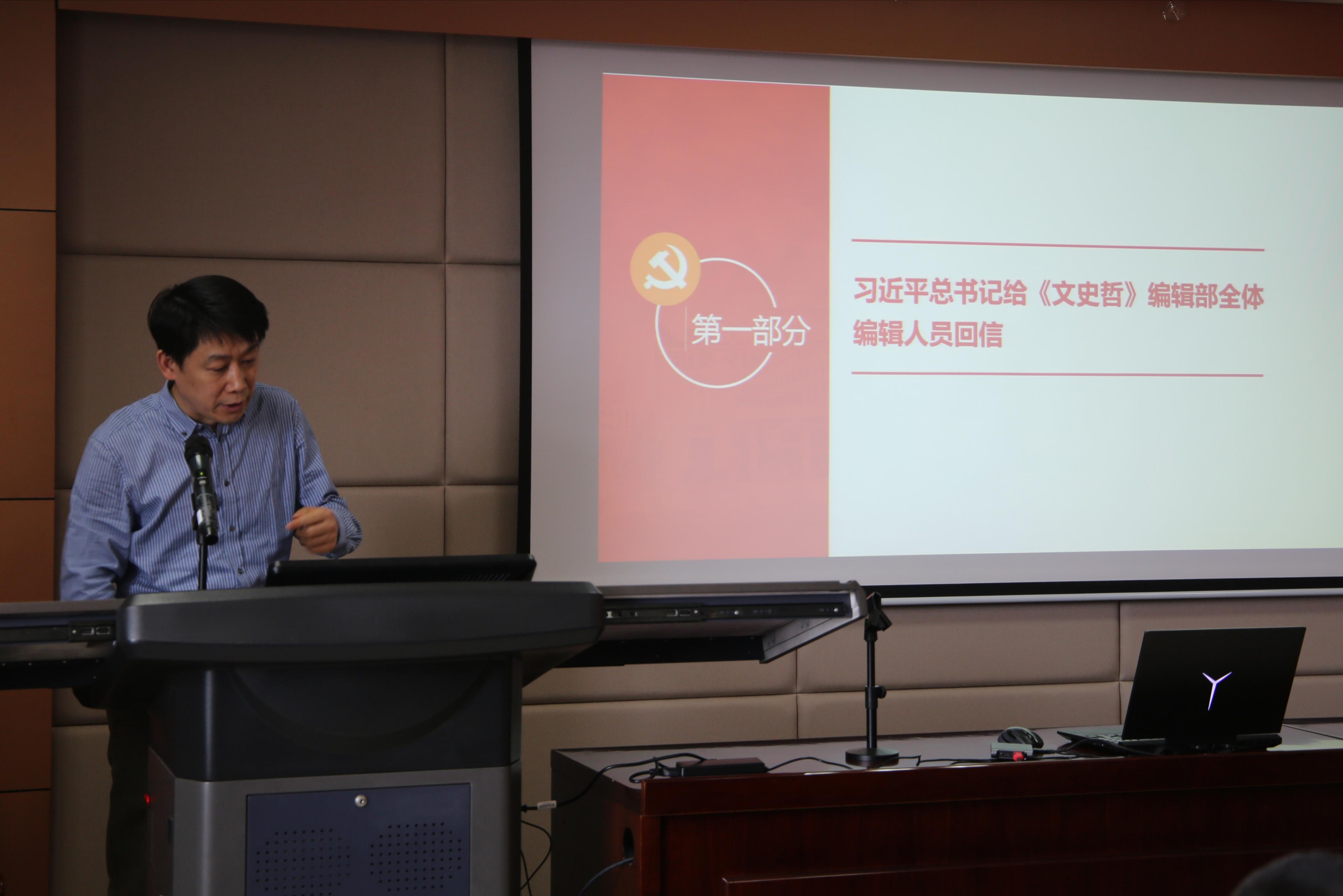 张帅首先带领大家学习了习近平总书记给《文史哲》编辑部全体编辑人员的回信。杜泽逊、黄发有、程相占、李桂奎分别就回信谈学习体会。