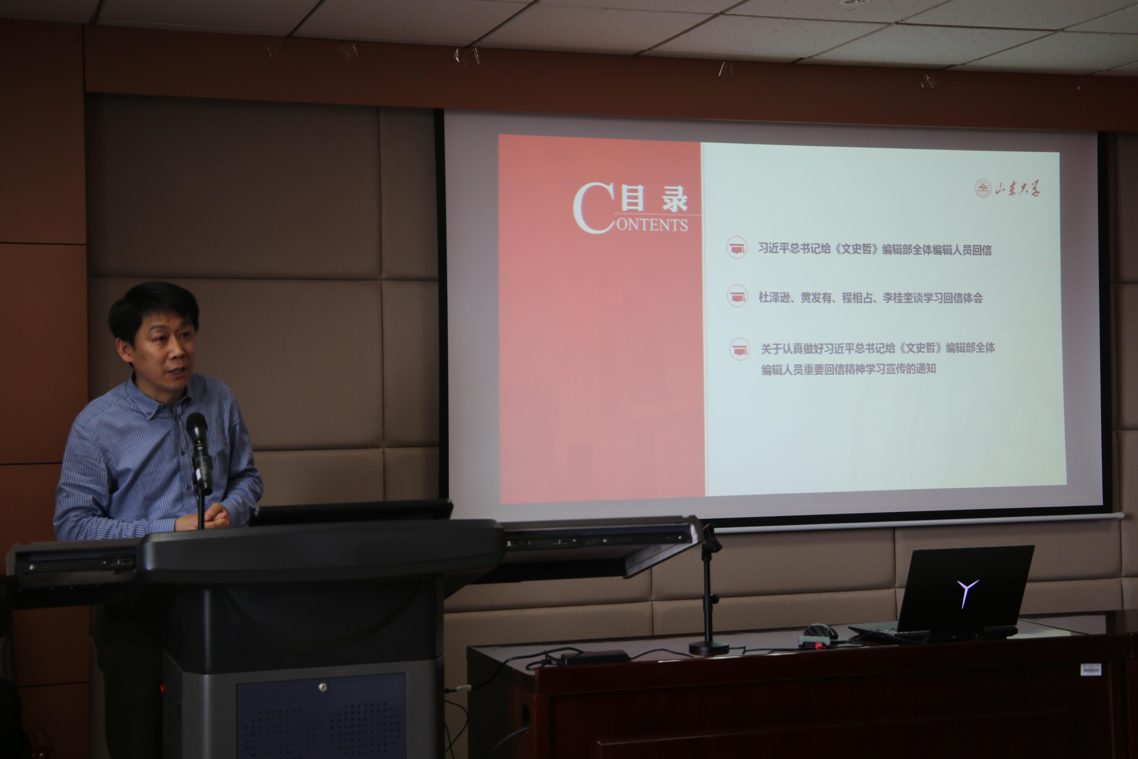 山东大学的《文史哲》学报是山东大学凝聚人文学科的智慧和力量,经过长期努力而打造的学术名片,体现了山大几代学人严于律己、追求卓越的学术精神。本次理论学习通过对习近平总书记重要回信精神进行研讨和解读,有助于248cc永利集团全体教职工充分理解、准确把握回信的核心要义、精神实质和丰富内涵,对共建有中国特色的哲学社会科学,努力建设哲学社会科学山大学派具有深远意义,为以中国智慧助推中国道路贡献山大力量指明了前进方向。