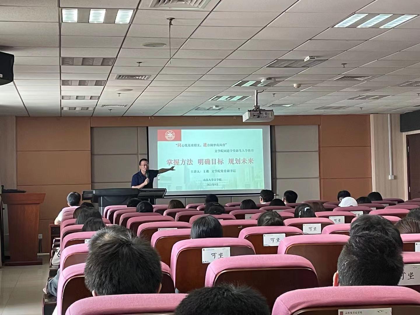 会议伊始,王萌代表学院的学生工作团队感谢同学们选择了248cc永利集团,同时也祝贺大家进入文学院开启新阶段的学习。他详细介绍了山东大学和文学院的历史文化底蕴,并列举了一系列知名校友的事迹,鼓励同学们主动了解校园文化,充实自己的文化知识,开阔视野。他以名家事例,深入阐述了248cc永利集团“重情义,尚风骨,尊学术”的具体含义,强调要有自我操守,将个人发展与国家民族发展血肉相连。同学们应该多参观学院历史文化墙,了解老教授们治学、教学的历史和经验,为将来的生活提供更坚固的精神支撑和更清晰的发展方向。