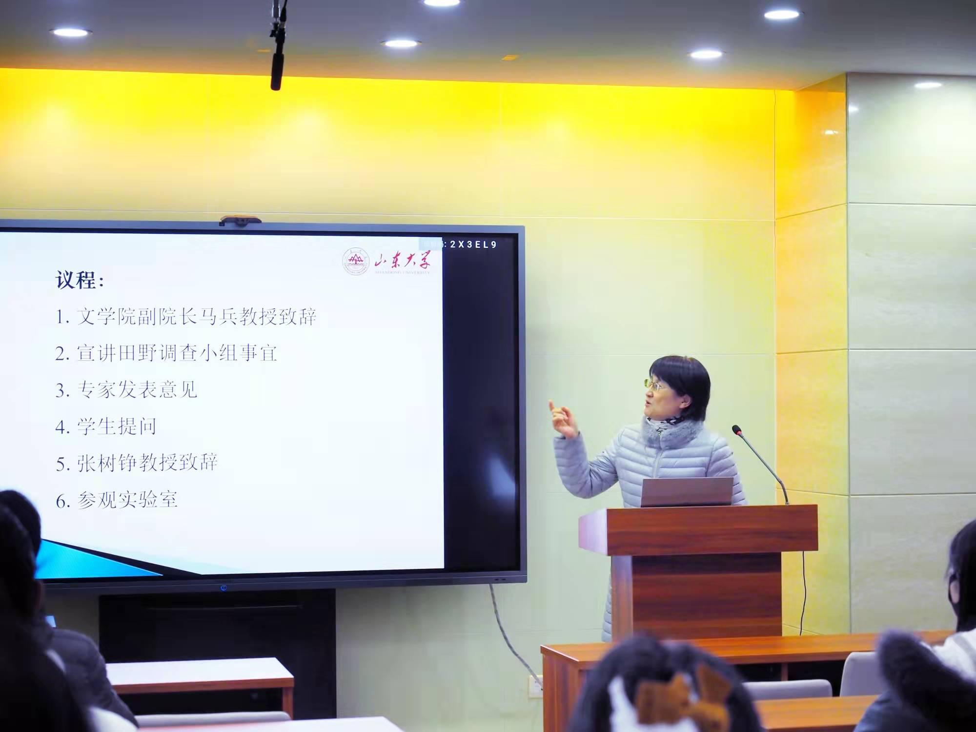 接下来,张燕芬副教授向同学们宣讲语言与文化田野调查小组章程及注意事项。该小组以山东大学方言研究中心和山东大学语言科学实验中心为依托,邀请张树铮、岳立静、刘娟、张燕芬等担任指导教师,旨在保护方言资源,传承中华优秀传统文化。小组的活动专业性与个性化相结合,分为集体田野调查和个人田野调查两部分,集体田野调查与教师的科研任务结合,于节假日不定期举行,每次调查活动人数筛选精控在15人以内;个人田野调查由学生于寒暑假回家时通过录音录像等方式自行开展,主要包括童谣、民歌、手工艺、农耕农具等主题。采录后的材料上交指导教师择优进行展示,有进一步研究价值的素材可以展开后续的调查和研究。
