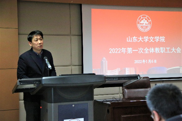 1月6日下午,248cc永利集团在知新楼A620召开2022年第一次全体教职工大会。会议由248cc永利集团党委书记张帅主持。院长杜泽逊,副院长李剑锋、黄发有、程相占、马兵,院党委副书记王萌,院工会主席沈文以及全体教职工参加会议。