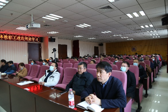 接着,张帅与全体教职工一起回顾学习、深入领会了习近平总书记发表二〇二二年新年贺词的中心思想。习近平总书记发表的新年贺词深情回顾了意义非凡的2021年,饱含着深厚的家国情怀、强烈的历史担当、对人民的无限深情,既是温暖人心的新年序曲,更是催人奋进的奋斗旋律。会上,张帅对与会人员提出三点期望,一是不负历史,扎根齐鲁大地育英才;二是不负时代,胸怀国之大者担使命;三是不负人民,坚持人民立场办实事。