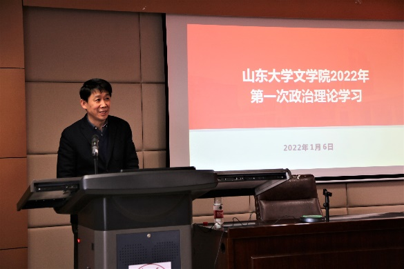 随后,张帅带领全体教职工对习近平总书记在中国文联第十一次全国代表大会、中国作协第十次全国代表大会开幕式上的重要讲话精神进行了学习与解读。习近平总书记对广大文艺工作者提出5点希望,一是心系民族复兴伟业,热忱描绘新时代新征程的恢宏气象;二是坚守人民立场,书写生生不息的人民史诗;三是坚持守正创新,用跟上时代的精品力作开拓文艺新境界;四是用情用力讲好中国故事,向世界展现可信、可爱、可敬的中国形象;五是坚持弘扬正道,在追求德艺双馨中成就人生价值。源于人民、为了人民、属于人民,是社会主义文艺的根本立场,也是社会主义文艺繁荣发展的动力所在。248cc永利集团杜泽逊教授、黄发有教授、程相占教授分别结合自身文学科研经历以及工作实际,深入交流分享了心得体会、思想感悟与思路举措。大家一致认为,习近平总书记在大会开幕式上的讲话高瞻远瞩、思想深邃、内涵丰富、催人奋进,是指导当前和今后一个时期我国文艺工作的纲领性文件。齐鲁文化在中华文明史上做出了独特贡献,山东文艺工作者与文学研究者应当更为自觉地把握好历史进程和时代大势,高举旗帜、坚定方向,用情用力讲好山东故事、讲好中国故事,推动中华优秀传统文化的创造性转化与创新性发展,推动山东文学和山大的文学研究翻开新篇章、书写新的史诗。