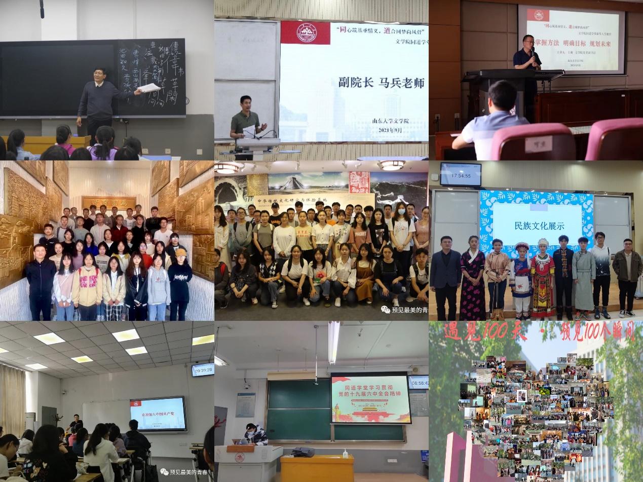 大学之道,在明明德。文学院同道学堂坚持以理想信念教育为核心,同心铸魂。入学时,学院为每人发放一本《修身教科书》,院长杜泽逊教授义务为同学们讲授《修身课》;副院长马兵教授通过开班仪式勉励同学们提高综合素质,树立正确人生观;副书记王萌副教授以“掌握方法,明确目标,规划未来”为题作专题报告;同道学堂组织收看《开学第一课》、《奥运思政大课》、“青年大学习”主题团课,参观博物馆、校史馆、中华文化体验基地,开展道德素养教育、新生入党启蒙教育、“四史”教育等系列讲座,举办民族文化展示、学习习近平总书记系列讲话精神和党的十九届六中全会精神主题团日,入学百天时出品“遇见100天·预见100个瞬间”纪念短片……教育引导同学增强“四个意识”、坚定“四个自信”、强化“五个认同”,铸牢中华民族共同体意识,传承红色基因,厚植家国情怀。