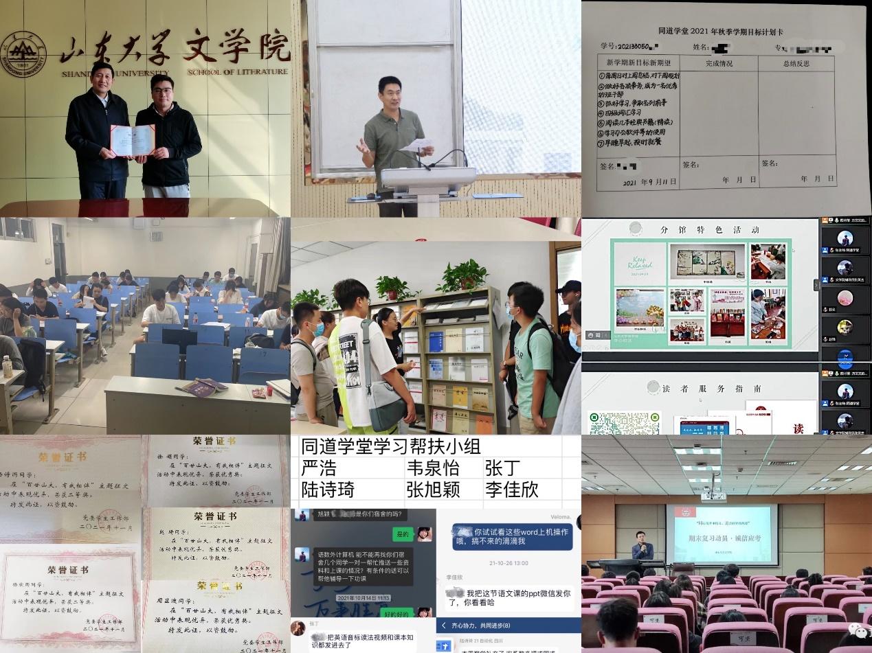 2021年7月起,文学院开始承担山东大学同道学堂学生培养管理工作。自承担工作以来,始终坚持“预本一体化”培养管理模式,在学校有关部门的指导下,在学院领导的重视和支持下,延续以往优秀做法,凝心聚力,守正创新,打好“组合拳”,助力学生提升综合能力,涵养家国情怀,增强爱校荣校意识,全力开创同道学堂学生培养管理工作新局面。