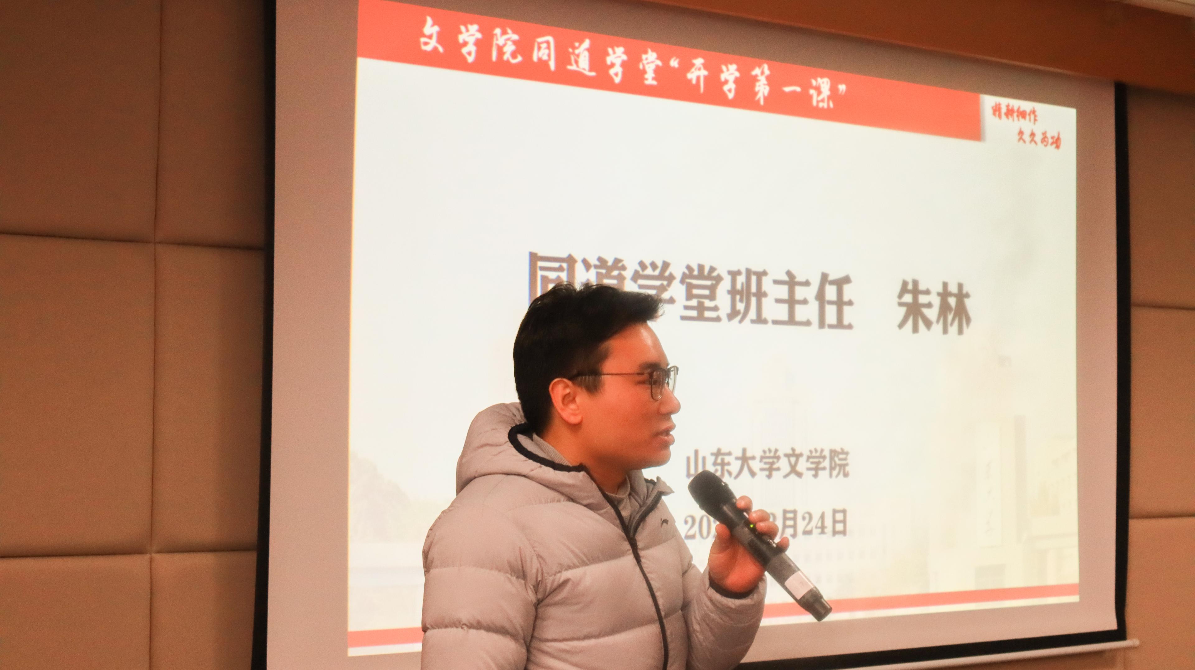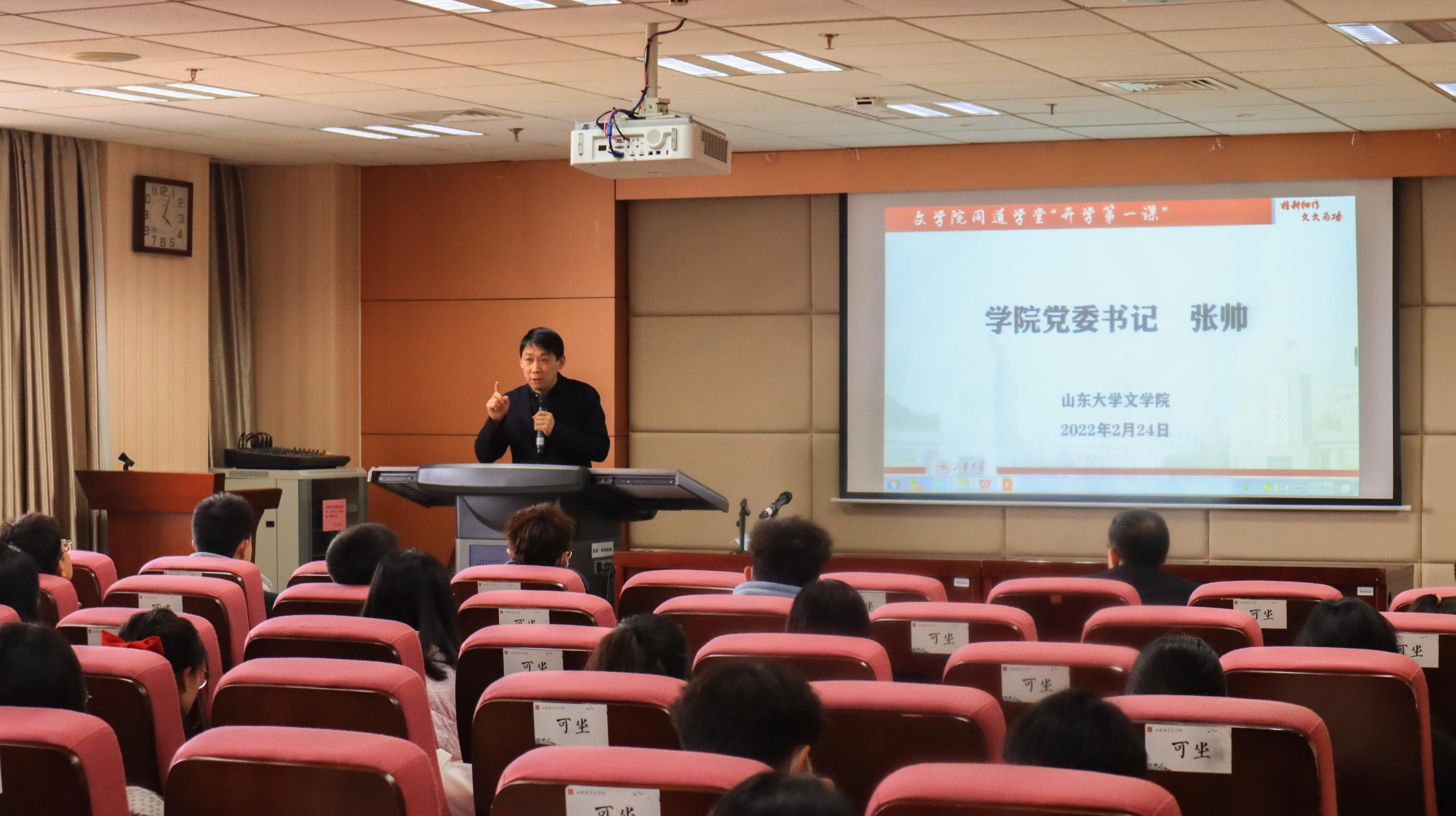 王萌在课上传达了郭新立书记在春季学期工作会议上的讲话精神,深入剖析“精耕细作”这一思想内涵并指出了勤学储能、功不唐捐的重要意义,并以“融入、学习、成长、完善”四个关键词展开论述。第一,他就同学们如何融入山大发展大局传达了学校的“121行动路径”、“七大战略”等,指出山大学生应积极应对机遇和挑战。同时他强调要牢记习近平总书记提出的“国之大者”,当代青年学生要思考如何融入国家大局,承担起时代大任。第二,他指出山大正对标对表“三新一高”要求,同学们应更加注重学科融合,用长远的目光看待事物的发展。第三,他根据当今网络发展形势,警示同学们要杜绝“娱乐至死”、“金钱本位”等错误思想,应当树立社会主义核心价值观和成人为己、成己达人的理念。第四,他结合知名校友的事迹,向同学们阐述了刻苦学习并在学习中总结方法经验对行为习惯养成和人生发展具有的重要意义。