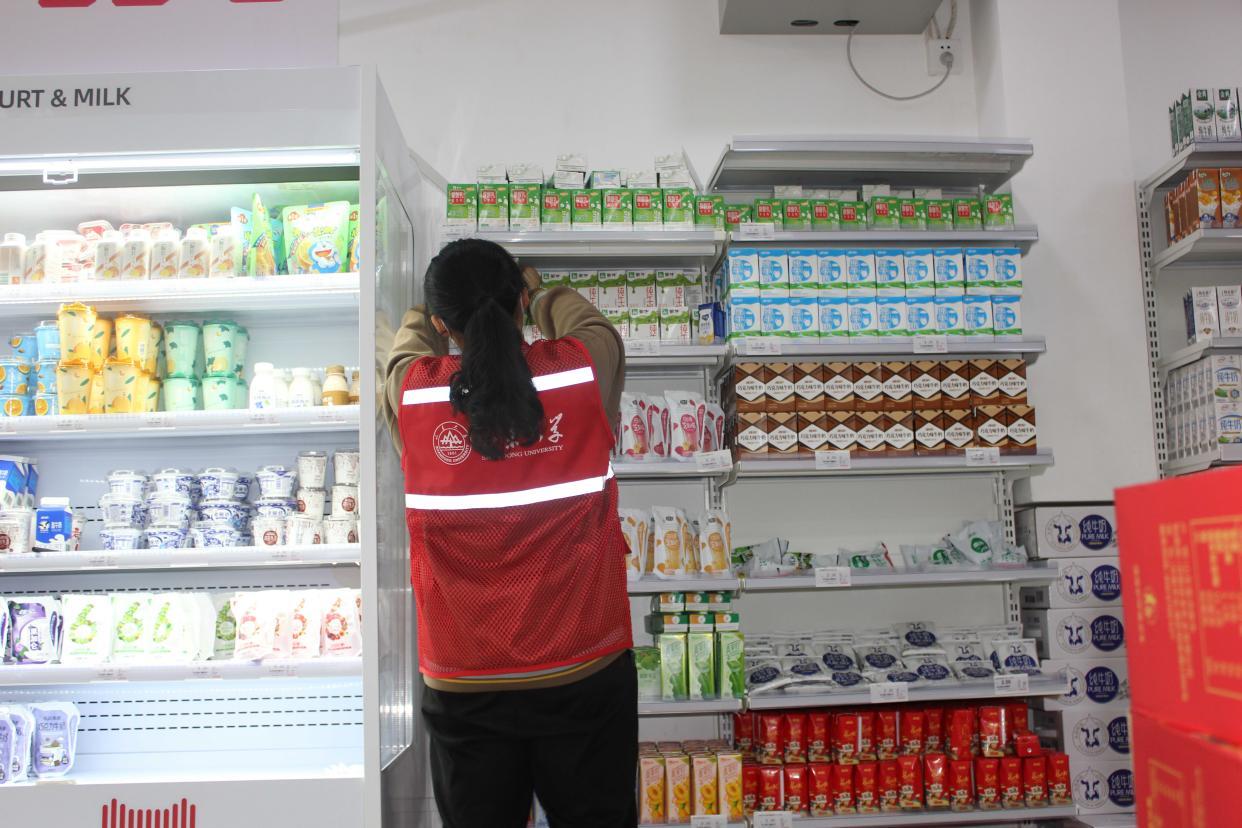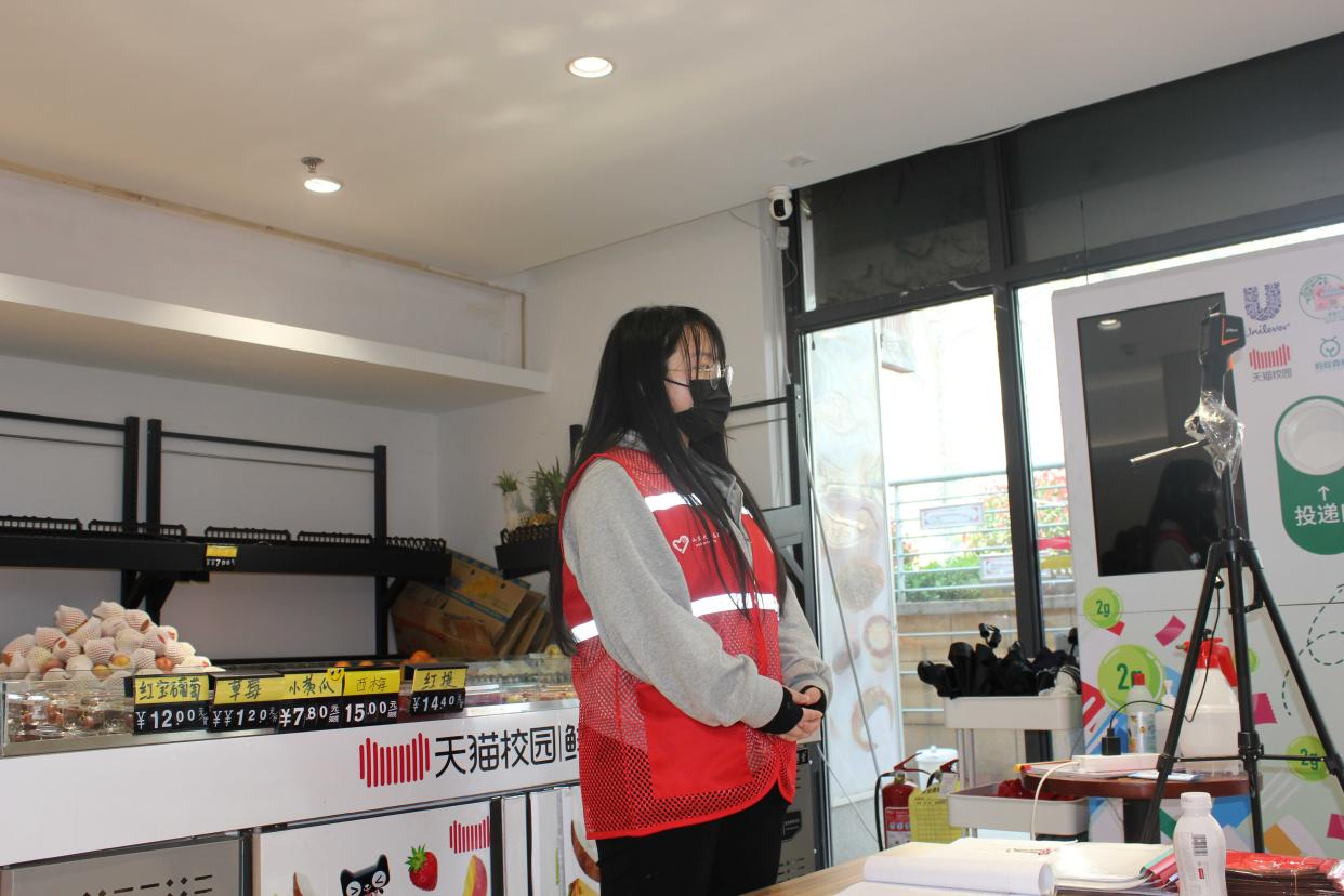 在超市的每个区域,都能看到文院志愿者们勤恳工作的背影。他们穿行于货架之间,测温枪“滴滴”的声响和笔尖掠过纸张的“沙沙”声,是志愿精神最有力的证明。志愿者们高涨的工作热情和良好的精神风貌,不仅得到了超市员工和师生的认可,也为在校师生的生活保障和学校的疫情防控工作奉贡献了一份文院学子的力量。