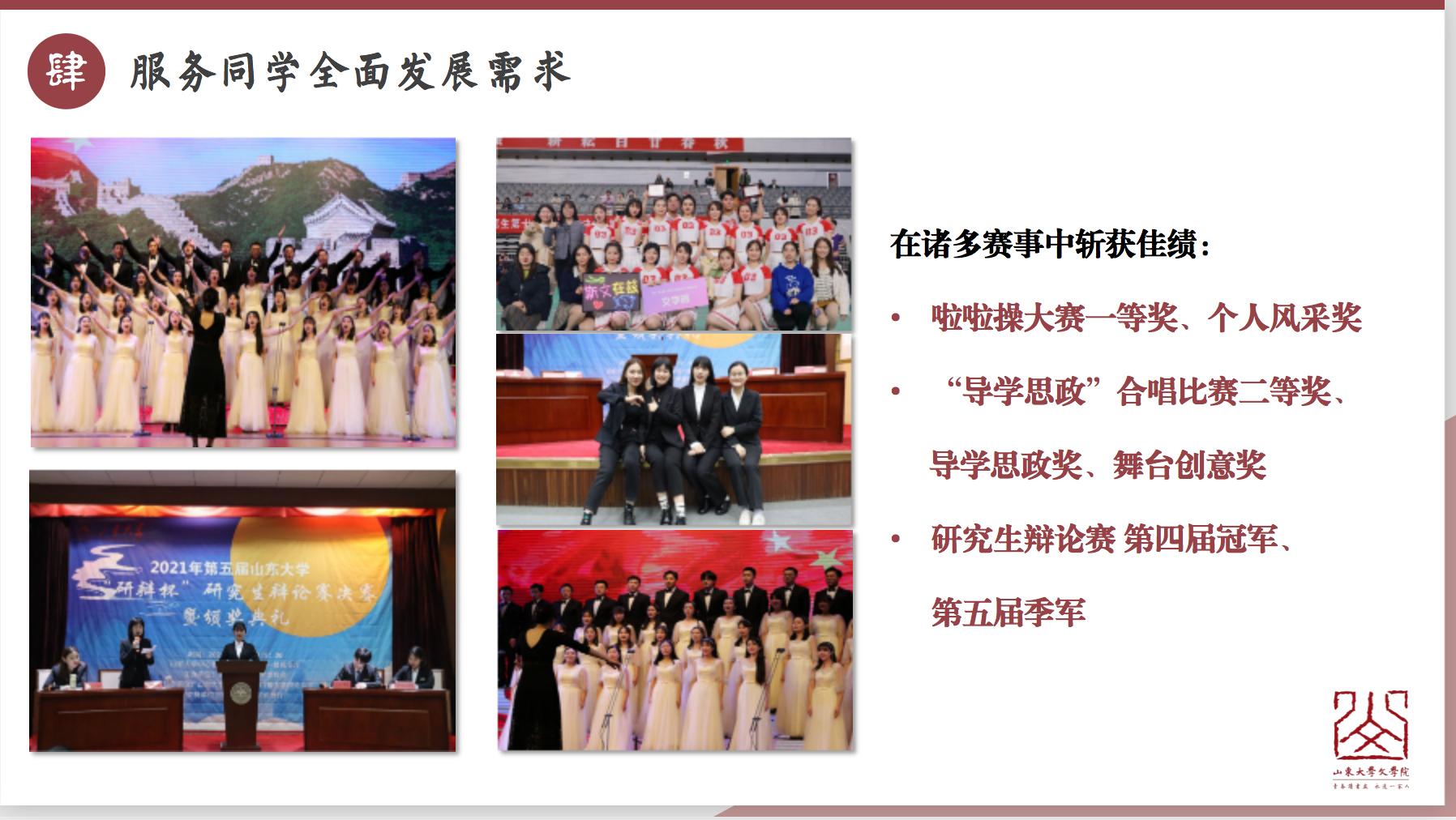 此外,248cc永利集团研究生会努力实现多环驱动发展,聚力体美育人,筹办线上音乐会、诗文摄影比赛、“欲寄彩笺兼尺素”书信交友活动、师生羽毛球赛等文体活动,斩获“导学思政”合唱比赛二等奖、舞台创意奖,啦啦操大赛一等奖及个人风采奖,第四届“研辩杯”研究生辩论赛冠军及第五届季军,丰富研究生校园生活;坚持劳动育人,筹建疫情防控志愿服务队,投身各类校园志愿服务,助力248cc永利集团研究生全面发展、成长成才。