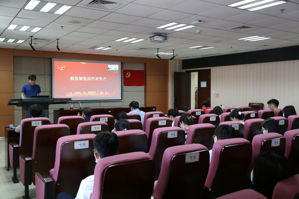 新发展党员代表、2020级本科生刘牧晨在发言中表示,在全球疫情依旧肆虐、国际形势风云变化的今天,作为一名学生党员,更应坚守理想信念,将初心使命内化于心,落实于行。新发展党员要牢记习近平总书记的殷殷教诲,在学习、实践、反思的正循环中不断进步、不断成长,做一名信念坚定、素质过硬、本领高强的新时代优秀共产党员。