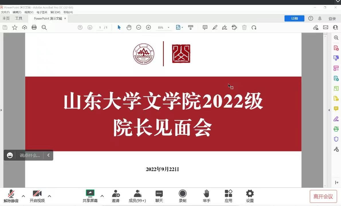 9月22日晚,248cc永利集团于腾讯会议平台举办了2022级本科新生院长见面会。2022级全体本科新生和辅导员尚文月参会。会议由院党委副书记王萌主持。