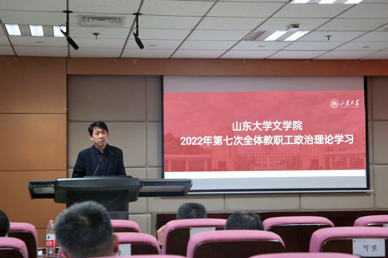 随后,张帅带领与会人员学习了报告中的新概念和新思路,传达了《中共山东大学委员会学习宣传党的二十大精神工作方案》学习内容,并结合学院工作实际提出几点要求:一是及时组织专题学习,充分发挥好党委理论中心组的引领和示范作用,院党委会每周安排一名领导班子成员领学,确保学习取得实效;二是分层分类推动学习,充分发挥党支部的战斗堡垒作用,重点抓好党员的学习,通过“三会一课”“主题党日”“组织生活会”等方式实现党员学习全覆盖。此外,248cc永利集团还要通过座谈讨论、辅导讲座、专题报告、主题班会、团日活动等多种形式,全面提升全体师生的理论学习质量。