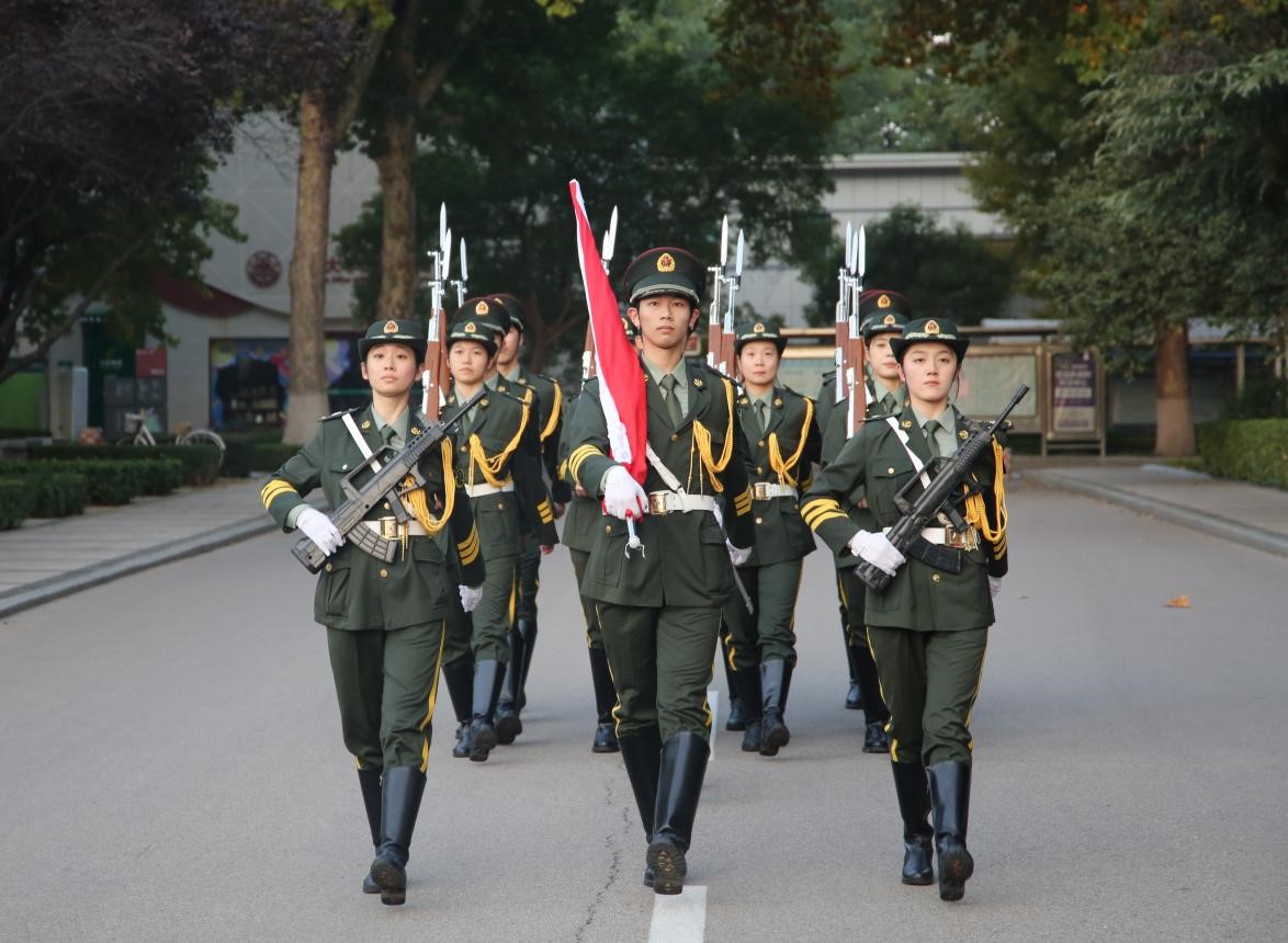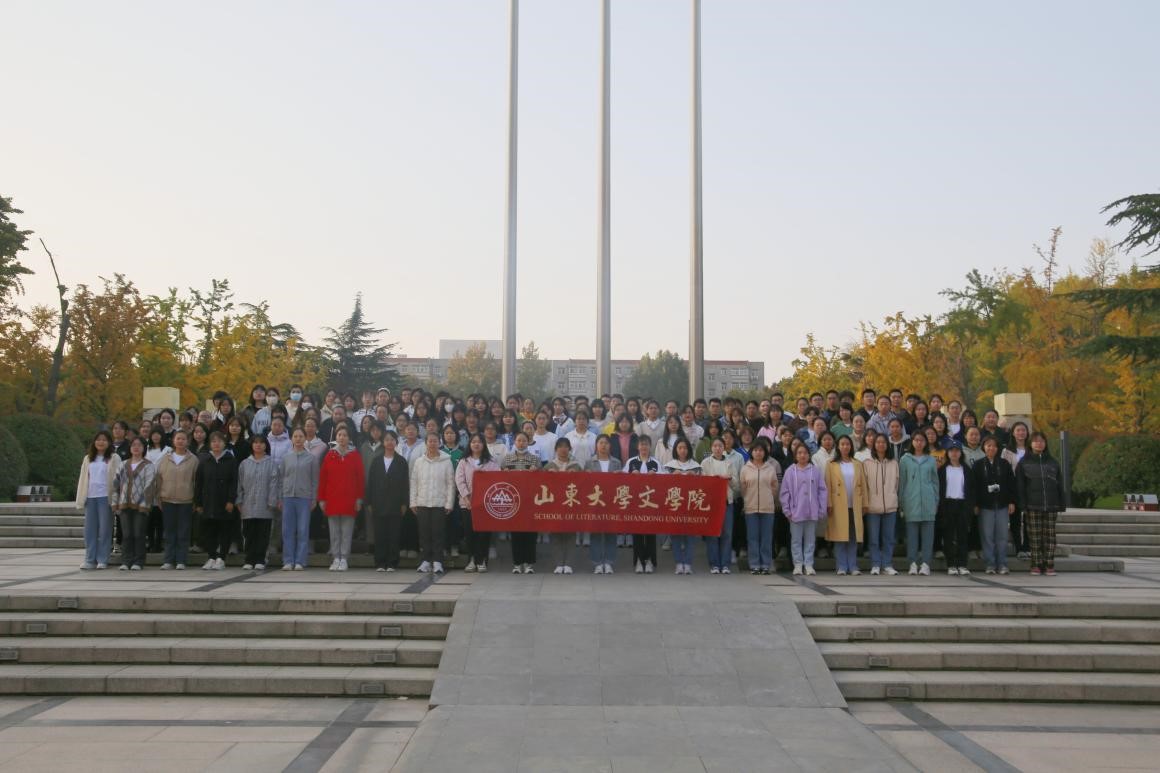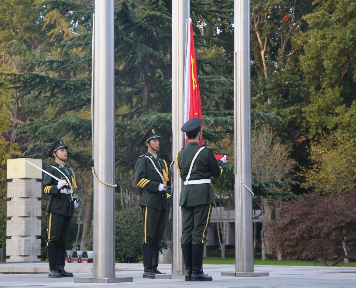 活动伊始,全体同学整装肃立。秋日晴空下,山东大学国旗护卫队的同学们身姿如松、步伐整齐、口号响亮,以庄重严肃的姿态将国旗护送至主席台前。伴随着振奋人心的国歌声,五星红旗冉冉升起,全体同学以激昂的精神和饱满的热情唱响国歌。