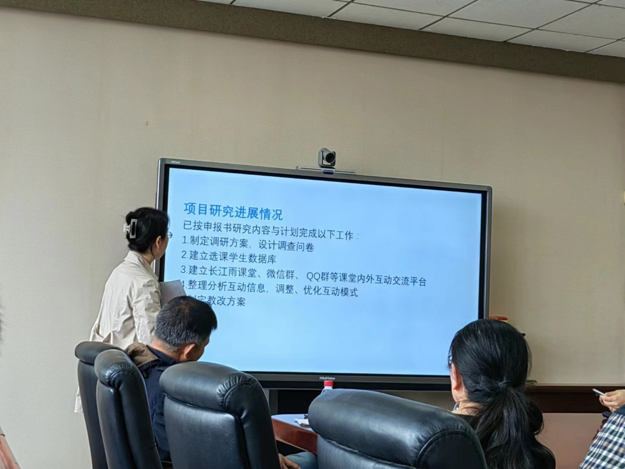 然后,中期汇报的各项目负责人总结了目前已取得的成果和下一步的研究计划,并提出项目研究过程中面临的主要问题或挑战。刘娟老师以基于实验室面向社会服务的语言理论课“教学-科研-应用”互动教学模式的构建探索为主题提交了中期报告,孙丽华老师分享了大量生动鲜活的课程教学案例,赵鑫老师展示了丰富多样的课程探索实践成果,黄丽珍老师对所主持“开辟经典导读新时空,打造师生学习共同体:对新文科背景下《红楼梦》导读课程多元互动教学模式的探索与实践”项目中期开展进度、教学改革的思路、目标与方向以及预期研究成果等进行了深入介绍。