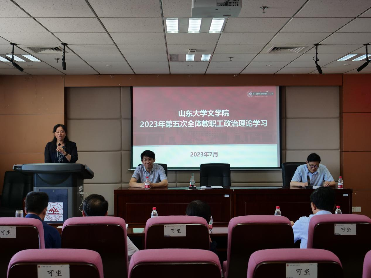 郭春晓表示,文学院历史文化积淀深厚、人才建设成就突出,自己将不断学习交流,与全院师生合力推动学科建设迈上新的台阶。随后,郭春晓领学了习近平总书记在中共中央政治局第五次集体学习时的重要讲话精神。她指出,习近平总书记的讲话深刻阐述了教育在中华民族伟大复兴中基础性、先导性、全局性的地位和作用。她结合典型案例,指出要将强化师德师风建设这一首要之举、关键之举抓牢抓实,并呼吁全院教师传承发展248cc永利集团“师道先路”的教育理念、勇担教育强国使命,做新时代的“大先生”,以大视野、大胸怀、大格局、大担当和大气象成为学生为学、为事、为人的示范,从而促进学科的全面振兴和学生的全面发展。