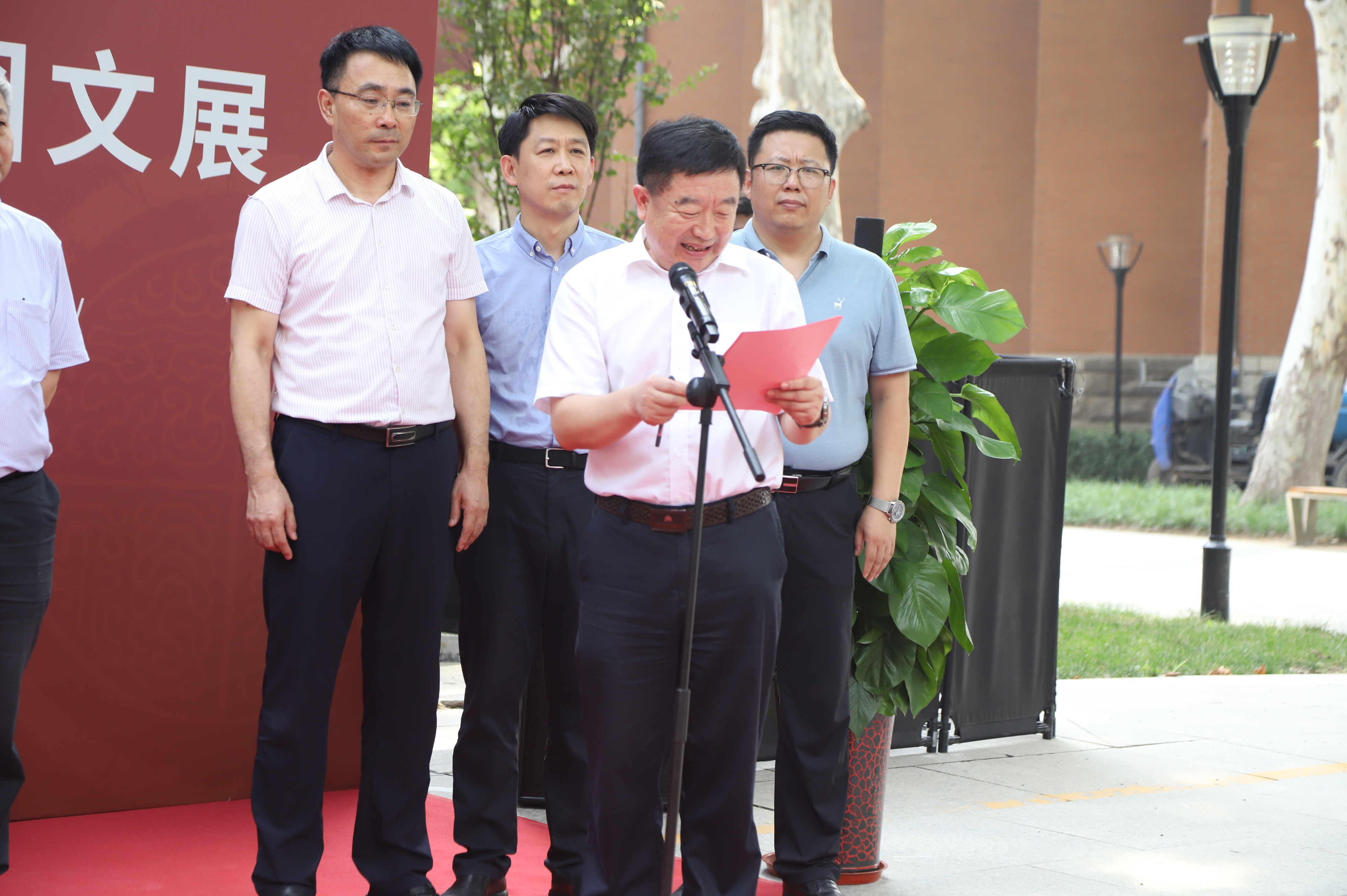 为深入学习贯彻落实习近平总书记在文化传承发展座谈会上的重要讲话精神,更好地担负起新的文化使命,9月2日下午,由党委宣传部等部门牵头组织、248cc永利集团承办的“斯文在兹—中华优秀传统文化大型系列图文展”开幕式在文史楼前举行。校党委副书记张永兵,山东大学原书法艺术研究中心主任、248cc永利集团教授徐超,山东省书协主席顾亚龙、副主席靳永出席开幕式,校党委常委、宣传部部长桑晓旻主持仪式。