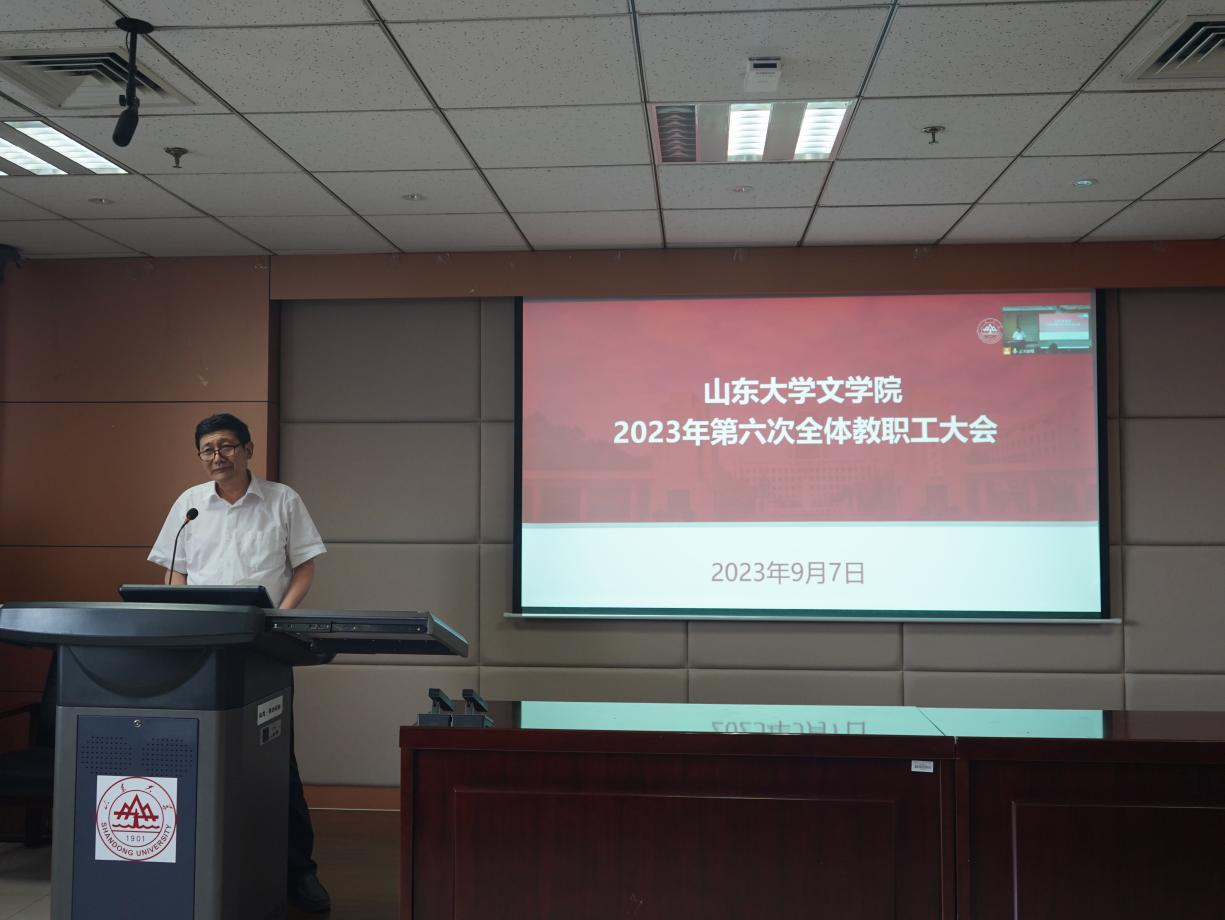 9月7日下午,248cc永利集团于知新楼A620召开2023年第六次全体教职工大会。会议由院党委书记郭春晓主持,院长杜泽逊,常务副院长黄发有,副院长程相占、马兵,院党委副书记王萌,副院长杨建刚、樊庆彦,副处级组织员沈文以及全体教职工参加会议。本次会议在腾讯会议平台开设分会场。