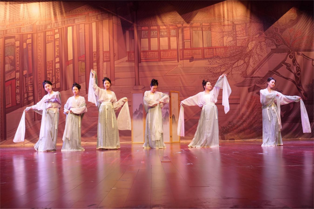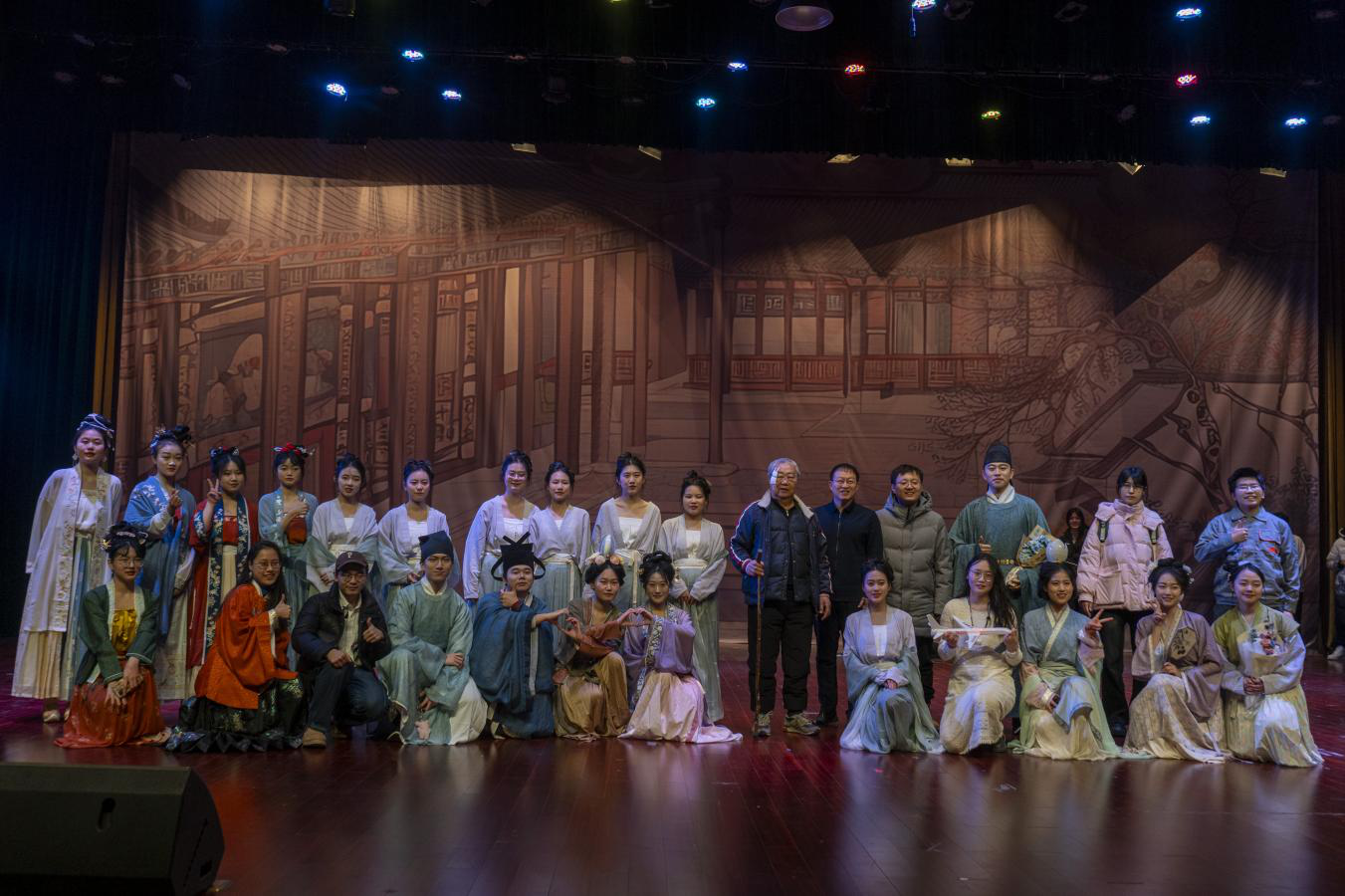 演出过程中,演员们深入挖掘角色内心世界,通过肢体动作和表情神态演绎人物形象、外化人物心理,真实再现南宋时期的社会风貌与礼仪文化,彰显出中华民族深层的文化审美和精神追求。同时,舞者们以生动的舞姿呈现了雅致清丽的宋代舞蹈,传达出宋代舞韵和中华传统美学的精髓气蕴。歌舞展演结束后,全体演职人员合影留念,并邀请现场观众上台合影。