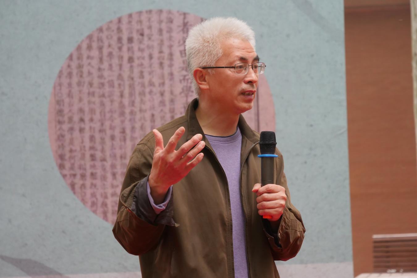 随后,徐孝刚宣布“书香漫溢,文脉薪传”首届读书文化节正式启动。在“经明行修,艺苑撷珍”师生共话环节,孙奇和刘书刚作为主讲人向在座师生分享了自己的阅读心得。孙奇表示,书籍中蕴藉着中华民族的精神品格,读书可以温润生命、滋养精神,青年学子应当用书籍搭建成长阶梯。刘书刚则对比了庄子和孔子的读书状态,并分享自己品鉴黄庭坚诗歌时的心境体悟。在老师的启发下,同学们从情感体验、压力化解和心性修养等方面交流读书收获。活动最后,季棠汉服社的三位同学身着汉服吟诵诗词,带领在场师生领略中华文化,品悟传统之美。