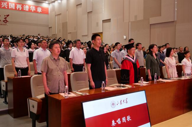 最后,全体师生一同唱响山东大学校歌。本次毕业典礼暨学位授予仪式圆满落幕。