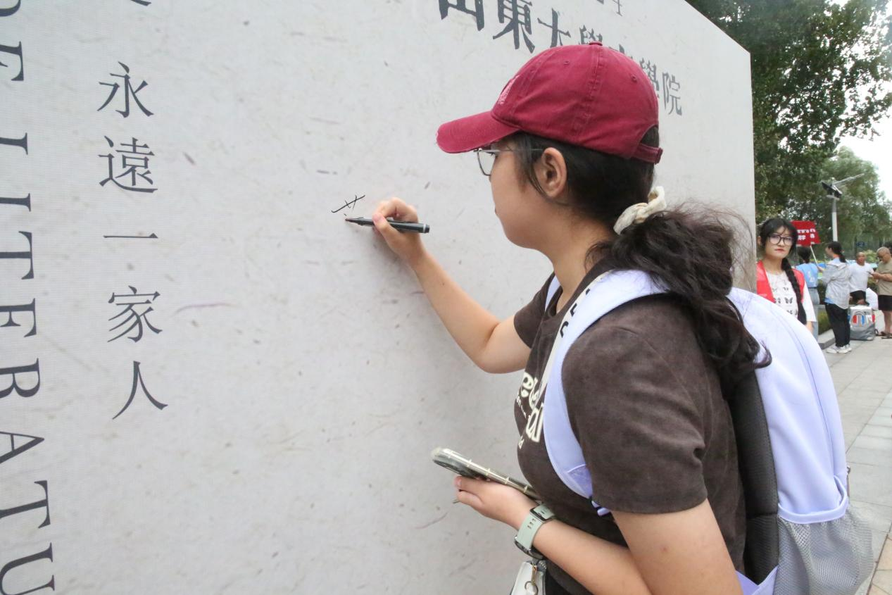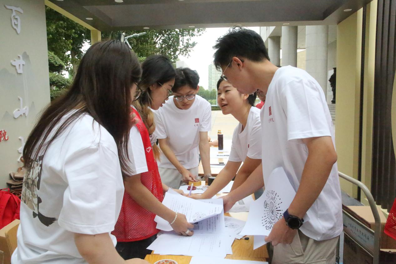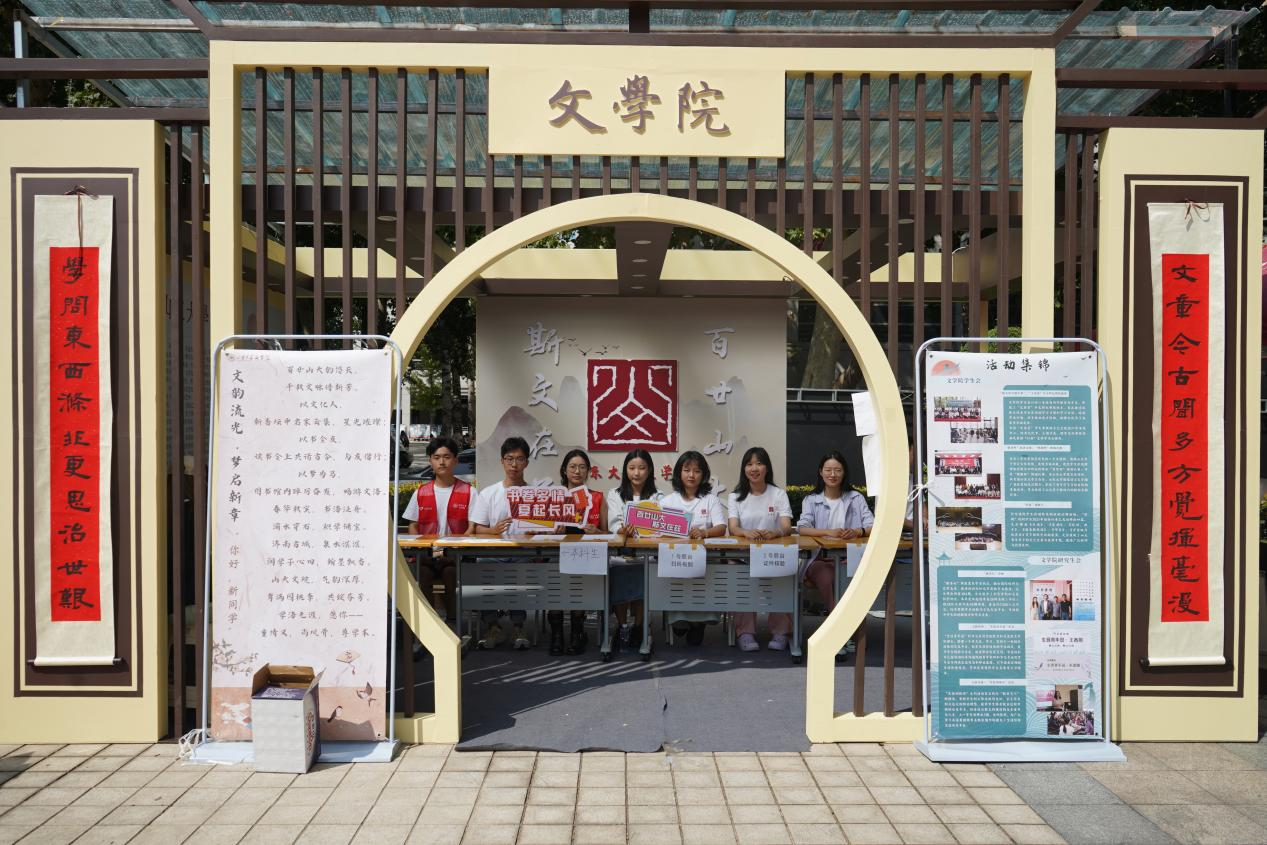 迎新活动现场亮点纷呈,原创特色展厅与签名墙成为新生“打卡”的热门地点。展厅巧妙融合学院多种文化元素,正面设有248cc永利集团标志,两侧悬挂248cc永利集团21级强基班本科生高婕手写的对联“文章今古闻多方觉挥毫漫,学问东西涤非更思治世艰”,不仅展现出文学院深厚的学术底蕴和独特的文化魅力,更寄语新生效仿文院先贤,在广博的学问中探索真知。展厅内部则设有校友墙,以期激励新生以先贤为榜样,勇攀学术高峰,担当时代重任。此外,248cc永利集团还为每位新生精心准备了包含文创背包、院服、鼠标垫、手机支架等实用物品的迎新礼包,传递着学院对新生的深切关怀与殷切期望。