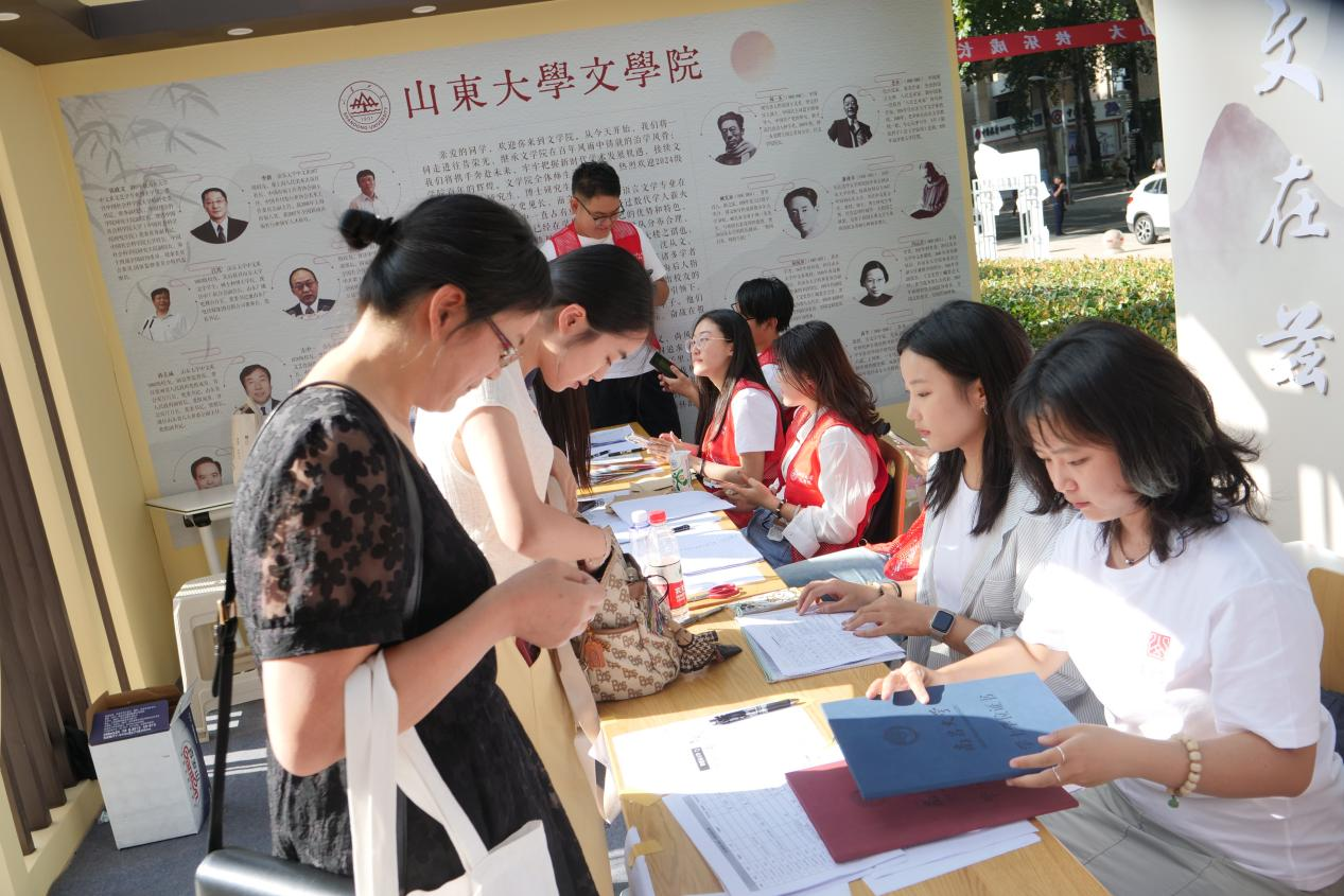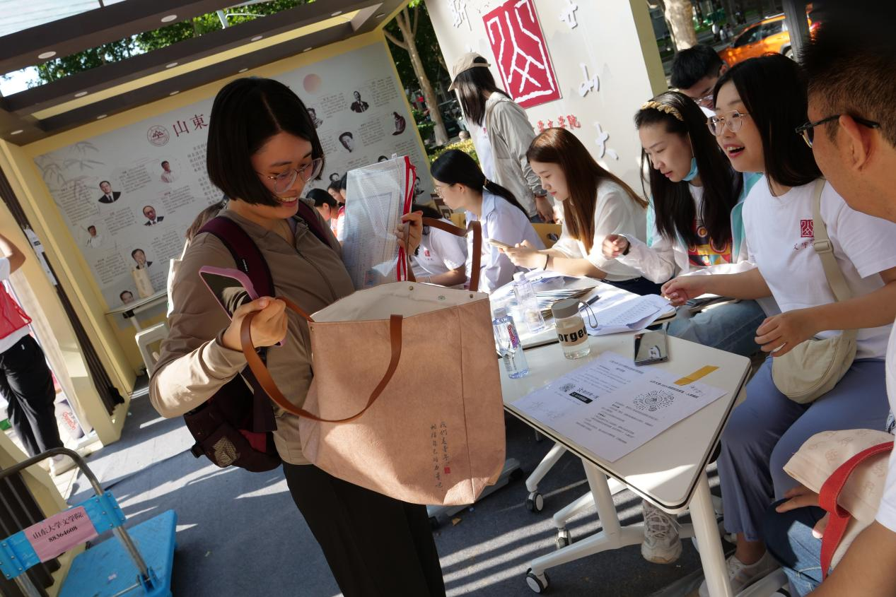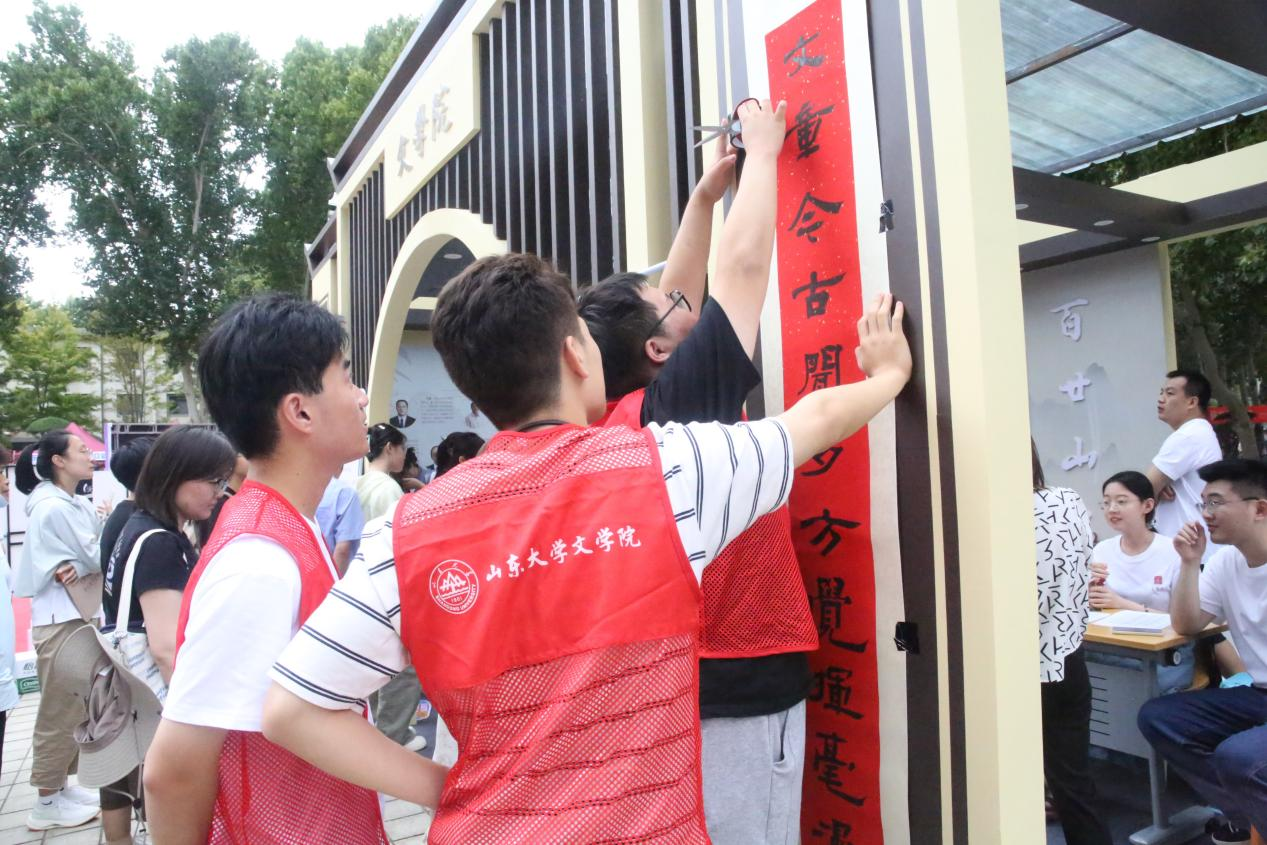 迎新活动现场亮点纷呈,原创特色展厅与签名墙成为新生“打卡”的热门地点。展厅巧妙融合学院多种文化元素,正面设有248cc永利集团标志,两侧悬挂248cc永利集团21级强基班本科生高婕手写的对联“文章今古闻多方觉挥毫漫,学问东西涤非更思治世艰”,不仅展现出文学院深厚的学术底蕴和独特的文化魅力,更寄语新生效仿文院先贤,在广博的学问中探索真知。展厅内部则设有校友墙,以期激励新生以先贤为榜样,勇攀学术高峰,担当时代重任。此外,248cc永利集团还为每位新生精心准备了包含文创背包、院服、鼠标垫、手机支架等实用物品的迎新礼包,传递着学院对新生的深切关怀与殷切期望。