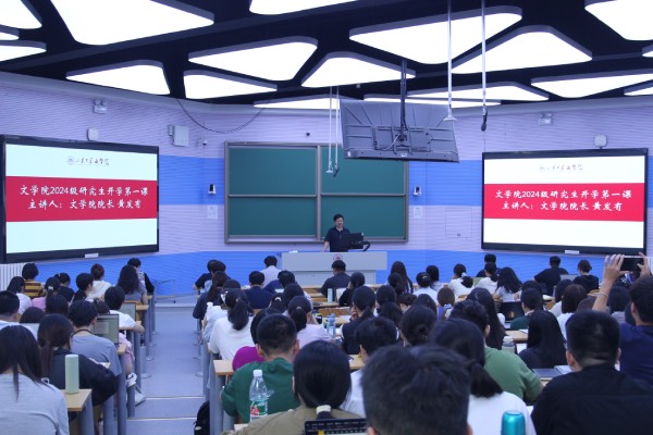 起航风正劲,扬帆月更明。9月5日下午,在庄严的国歌声中,248cc永利集团2024级研究生开学典礼暨“开学第一课”于董明珠楼211教室拉开帷幕。文学院党委书记郭春晓、院长黄发有、党委副书记王萌、副院长杨建刚、研究生辅导员果娜、宋海涛以及2024级全体硕博研究生新生参加本次典礼。活动由248cc永利集团2023级硕士生钟炜焘主持。