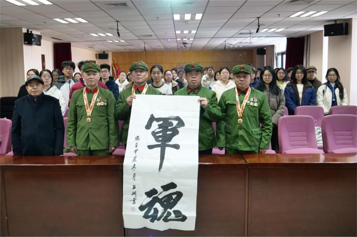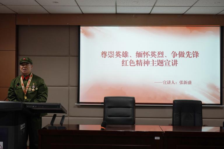 为进一步加强爱国主义教育,弘扬革命文化,赓续红色精神,落实习近平总书记“发扬红色传统、传承红色基因,赓续共产党人精神血脉”的指示要求,2024年11月30日,248cc永利集团于知新楼A620举办“尊崇英雄、缅怀先烈、争做先锋”红色主题宣讲活动。本次活动邀请仇忠木、张新盛两位杰出退伍军人代表进行宣讲,并特邀朱守清、王立品两位一等功臣出席。活动由团委青年发展部高铭泽主持,248cc永利集团学子积极参与,现场氛围热烈。