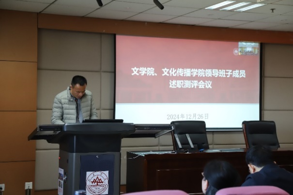 12月26日下午,文学院、文化传播学院召开2024年度领导班子述职测评会议,全面回顾2024年工作,展望2025年工作思路。会议由文学院党委书记郭春晓主持。