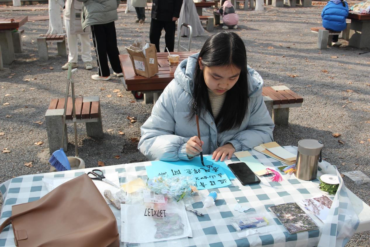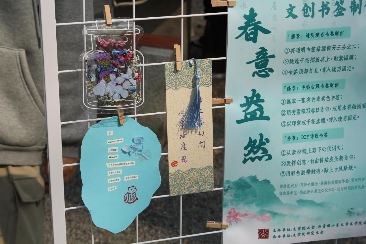 “春意盎然”文创书签展台人头攒动,洋溢着青春跃动的气息。在志愿者的耐心指导下,师生们充分发挥艺术创意,亲手制作成一幅幅别具匠心的微型春景。