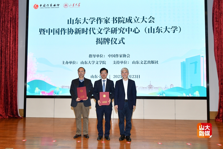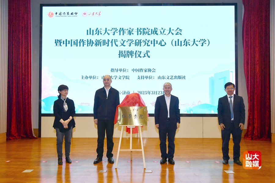 3月23日,山东大学作家书院成立大会暨中国作家协会新时代文学研究中心(山东大学)揭牌仪式在中心校区举行。中国作家协会党组成员、副主席、书记处书记吴义勤,校长、中国工程院院士李术才,全国新文科教育研究中心主任、教育部新文科建设工作组组长樊丽明出席仪式。著名作家、上海市作家协会主席孙甘露,山东省作协党组书记、副主席赵艺丁,中国作协原书记处书记施战军参加活动。