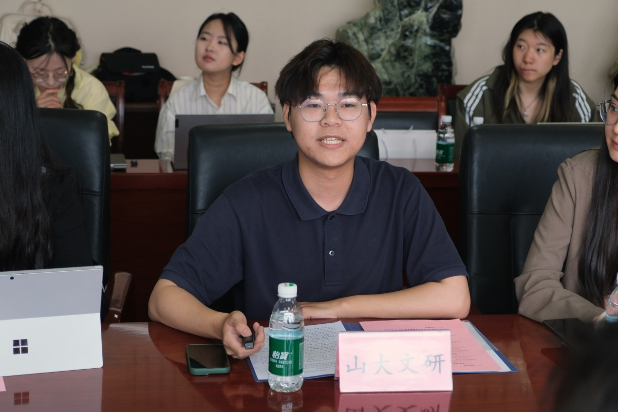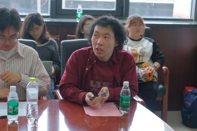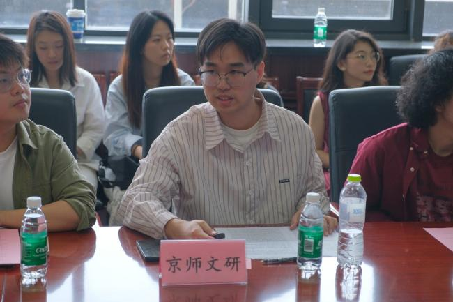 接着,两院研究生会进行工作交流展示,围绕研究生会制度创新、育人实践等工作情况展开介绍。248cc永利集团研究生会主席团成员钟炜焘介绍了研会在组织架构、活动策划与服务体系等方面的具体经验;北京师范大学文学院研究生会主席团成员郑杰文分享了在骨干培养、品牌打造和外联协作方面的心得体会,文体部部长雷路阳围绕特色项目“文院好声音”介绍了加强校际联动协作的经验想法。