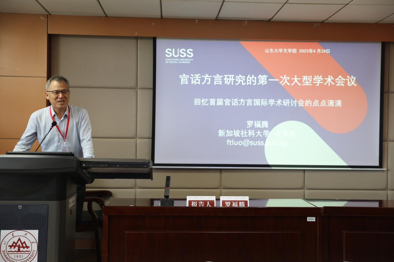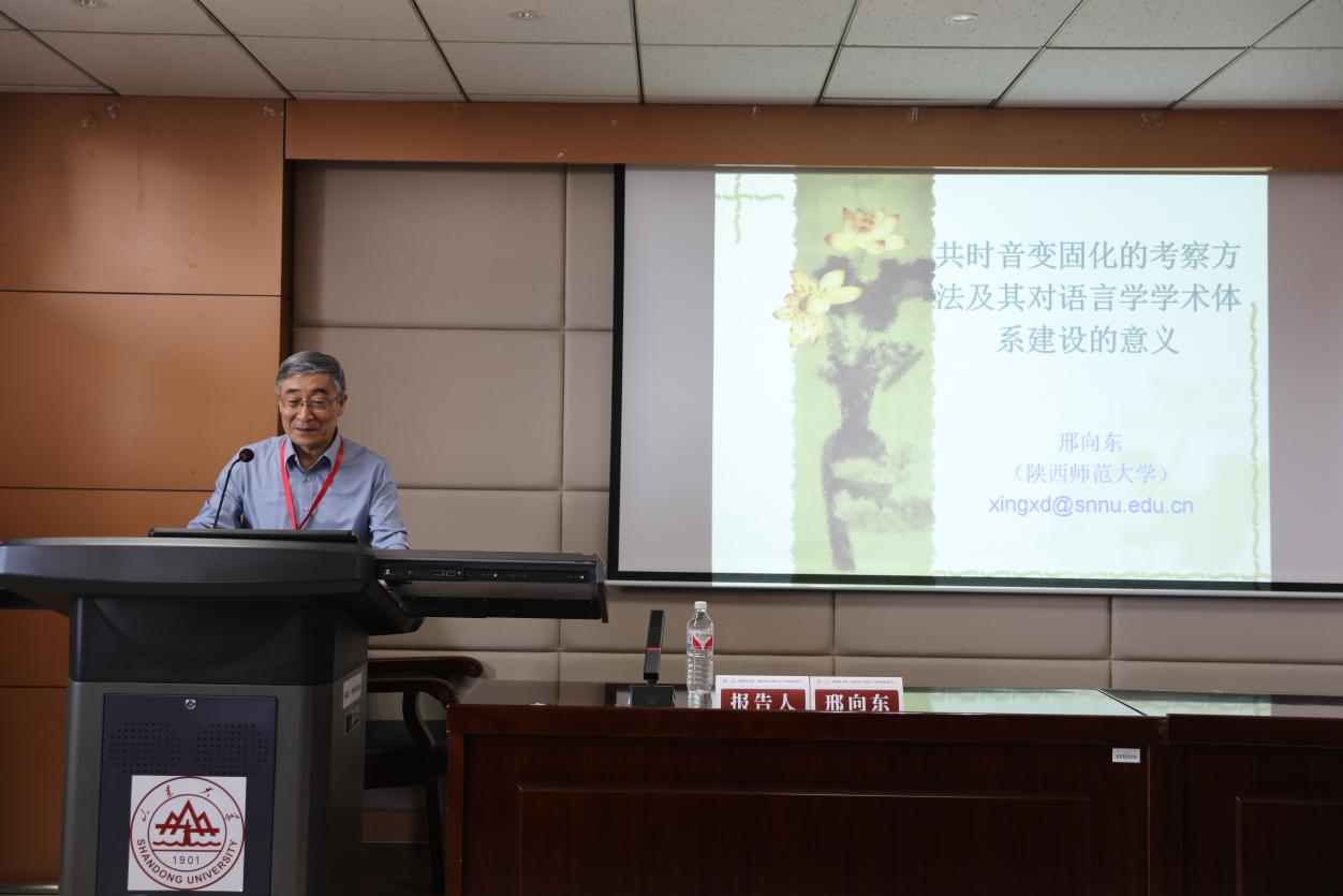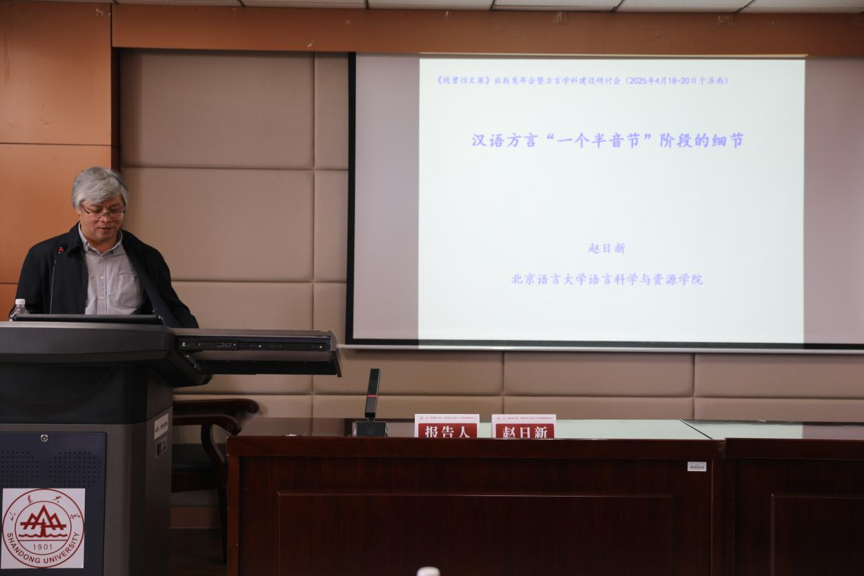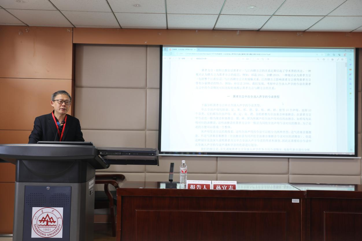 下半场研讨会在李蓝教授的主持下展开更富理论深度的探讨。北京语言大学赵日新教授分析了“浮游调”的概念及其在方言中的承载状况,引发对声调本质的理论反思。山东大学刘娟教授基于语音实验数据,揭示了山东方言降升调的变异规律。陕西师范大学邢向东教授讨论了“共时音变固化”的研究方法,为方言音变、方言本字考释等提供了新方法。杭州师范大学孙宜志教授通过古全浊入声字层次分析,论证了江淮官话黄孝方言的形成问题。中国海洋大学傅根清教授通过对李洣诸多笔名的破解,解析作家笔名中蕴含的语言和文化信息。两场研讨共完成9场主题报告,现场提问交流热烈而深入,既有微观的语言现象剖析,又有宏观的学科体系构建思考,充分体现方言学研究的学术活力。