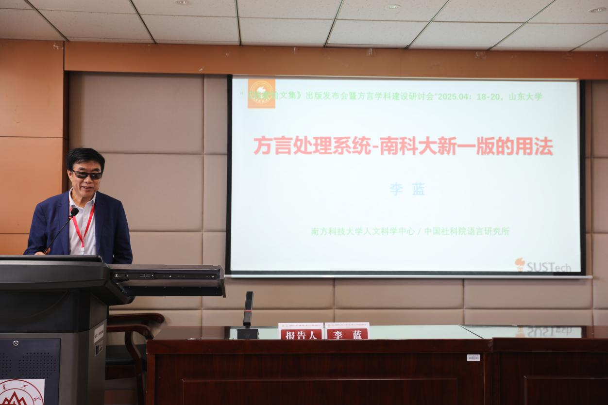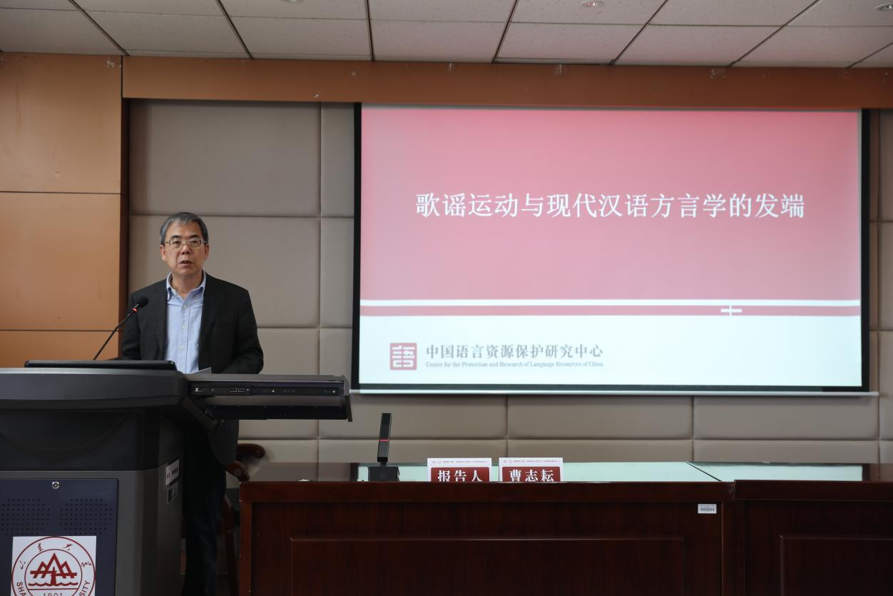 研讨会分两个环节进行。4月19日下午于知新楼A620报告厅举行方言学科建设研讨会(一),上半场由中国社会科学院刘祥柏教授主持,四位学者呈现了方言学领域的最新研究成果。日本神户市外国语大学太田斋教授以《再谈博山方言的儿化》为题,重新分析了博山方言儿化变韵的演变轨迹。新加坡社科大学罗福腾教授结合钱先生倡议并主持的首届官话方言国际学术讨论会,回顾了钱先生在推动官话方言研究中的突出贡献。北京语言大学曹志耘教授深入剖析上世纪早期“歌谣运动”与现代汉语方言学启动的关系,揭示两者的渊源与分野。南方科技大学李蓝教授对“方言处理系统南科新一版”的改进和新增功能做了说明,其科学而高效的性能引起大家极大兴趣。