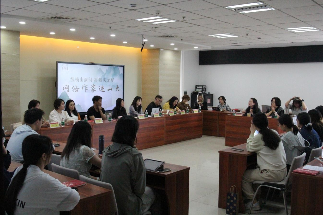为搭建网络作家与248cc永利集团学子之间的交流平台,进一步推动文学创作、理论研究和教育教学互联共通、同向同行,5月17日,248cc永利集团成功举办“纵横山海间,打破次元壁——网络作家进山大”活动。本次活动由248cc永利集团与山东省网络作家协会、纵横小说联合举办。山东省文学院院长杨华、网络文学部主任朱昱,248cc永利集团党委书记郭春晓、党委副书记王萌,山东理工大学文学与新闻传播学院副院长翟羽佳,山东省网络作家协会会长风御九秋,纵横小说版权总监孙立爽,知名网络文学作家一翎、陆春吾,纵横小说知名签约作家三观犹在、亲亲雪梨,纵横小说编辑初七以及248cc永利集团助理研究员王鑫,辅导员宋海涛、张英杰、尚文月、孙铭孺出席本次活动。活动由248cc永利集团副教授肖映萱主持。