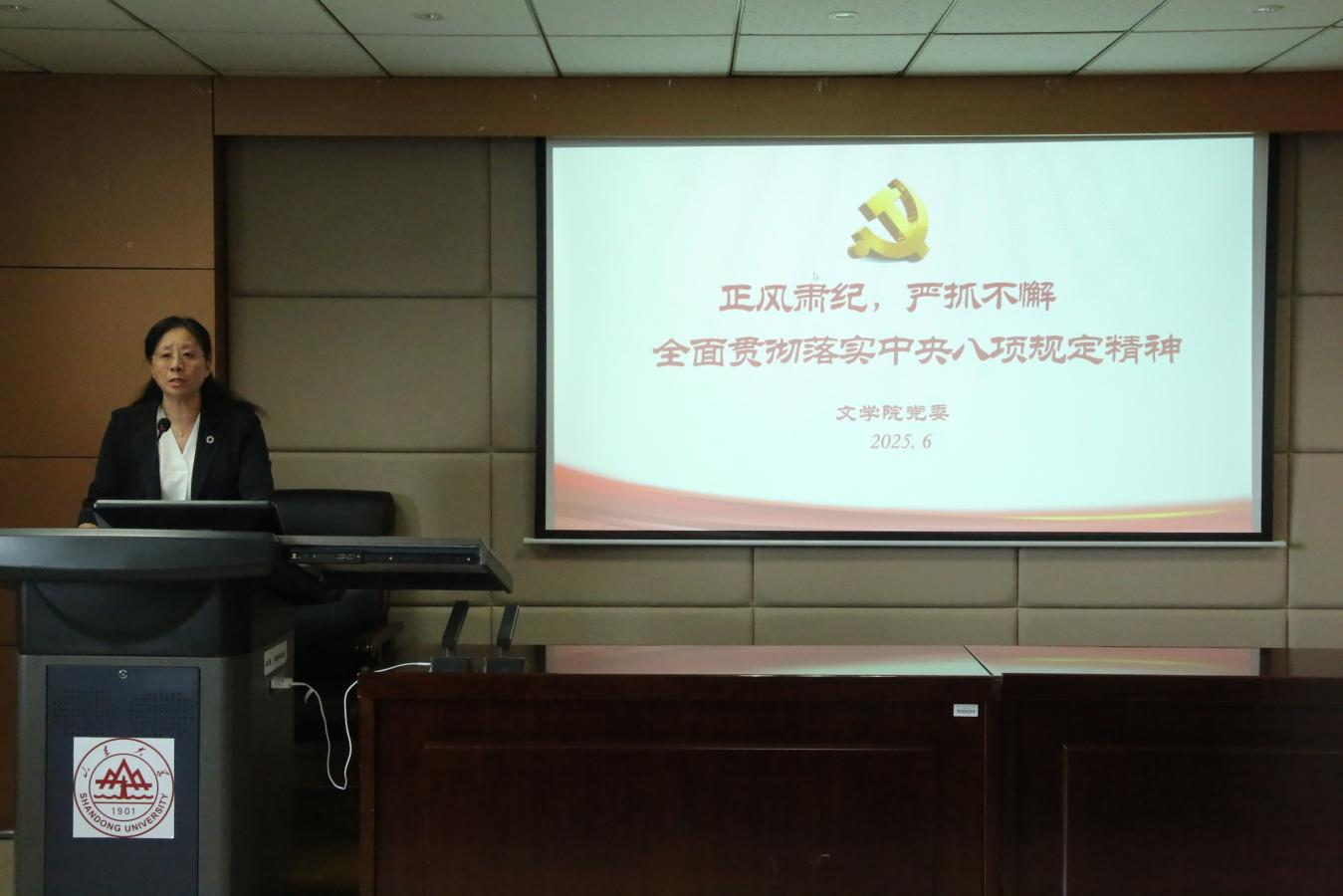 随后,郭春晓汇报了248cc永利集团贯彻落实中央八项规定精神的工作开展情况,并对下一阶段重点任务进行了部署安排。她表示,248cc永利集团通过主题部署会、专题报告会、联学联建等多种形式,切实强化理论武装、推动学习教育走深走实。同时,248cc永利集团实事求是建立问题清单,及时解决实际问题,并深入了解师生所需所难所困,坚持边学边查边改,确保整体工作稳步推进、取得实效。郭春晓强调,作风建设和全面从严治党始终在路上,学院将坚定不移做好“五个坚持”,不断强化思想认识、完善制度体系、层层压实责任,在坚持中深化、在深化中坚持,持续巩固拓展学习成果,推向作风建设迈向新台阶。