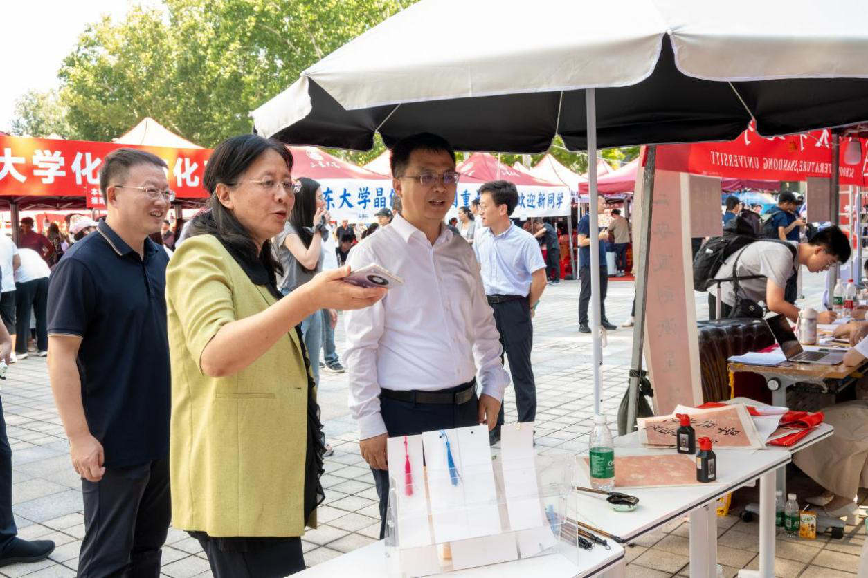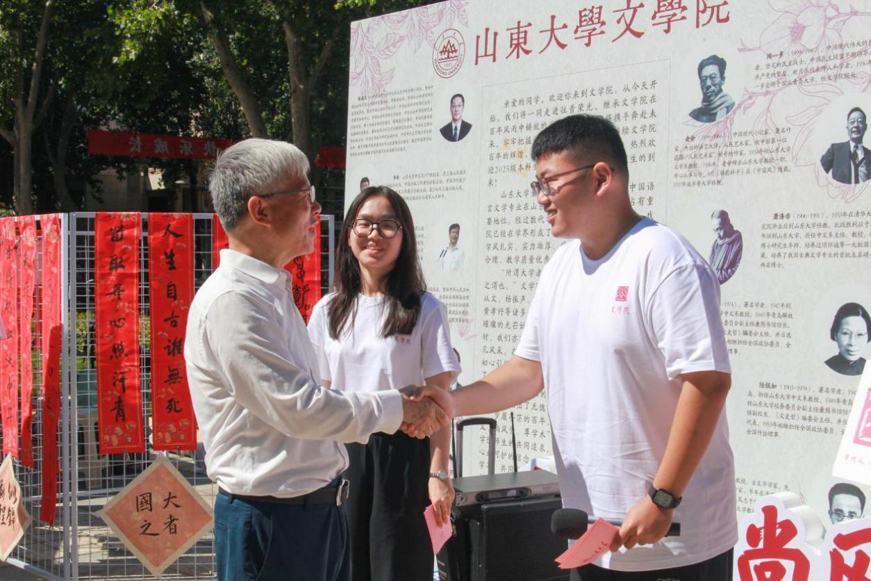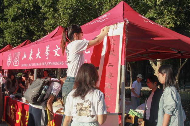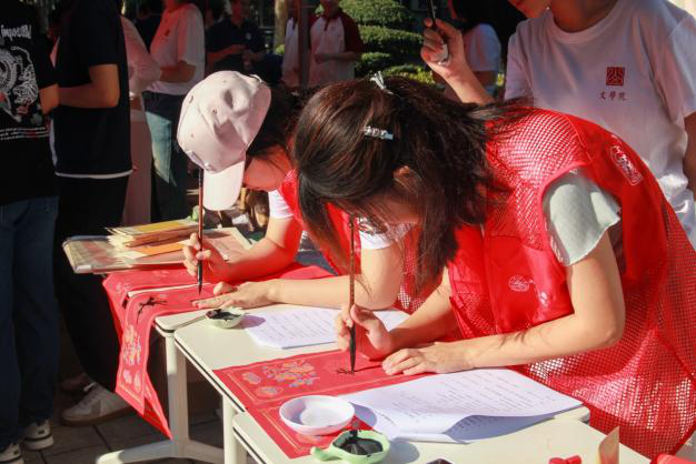 迎新活动现场,248cc永利集团精心布置书法展台,推出特色原创展演。展台左右两侧悬挂对联“文拟二安,佩剑冲星凌古志;学思万众,匣琴流水起新澜”,鼓励新生于典籍中汲取文脉力量、于思辨中开拓新境,成长为兼具情怀与锐气的文院新人。此外,248cc永利集团多位学子现场手写对联与书签赠与新生,将寄语融入笔墨,为初入校园的2025级新生送上专属祝福。演讲协会在迎新现场演出原创剧目《青山回响》,既展示出百年文院的深厚文化底蕴,也让新生燃起校园生活的满心期许。248cc永利集团还为每位新生精心准备了包含文创雨伞、帆布包、鼠标垫等实用物品的迎新礼包,彰显了248cc永利集团对新生的深切关怀。