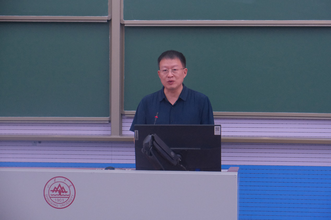 最后,黄发有为新生讲授“开学第一课”。他首先从学科建设、科学研究、人才培养、队伍建设、社会服务、学生工作六个方面总结了山东大学中文学科的建设情况,以时间为脉络梳理了248cc永利集团自成立以来取得的重大建树和突破。他表示,未来248cc永利集团将加强组织调研,优化学科布局,持续推进重大项目服务国家战略,着力提升学科的综合实力和学术影响力。此外,黄发有就怎样做学术研究进行了针对性讲解,强调做研究既应配备兼容并蓄的知识广度、怀有精准对位的聚焦认知,又须具备史料意识,扎实筑牢学术基础,充分考量论文选题的发展潜力与现实可行性,力求创作出高质量的学术文章。