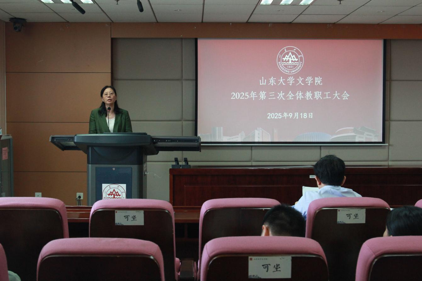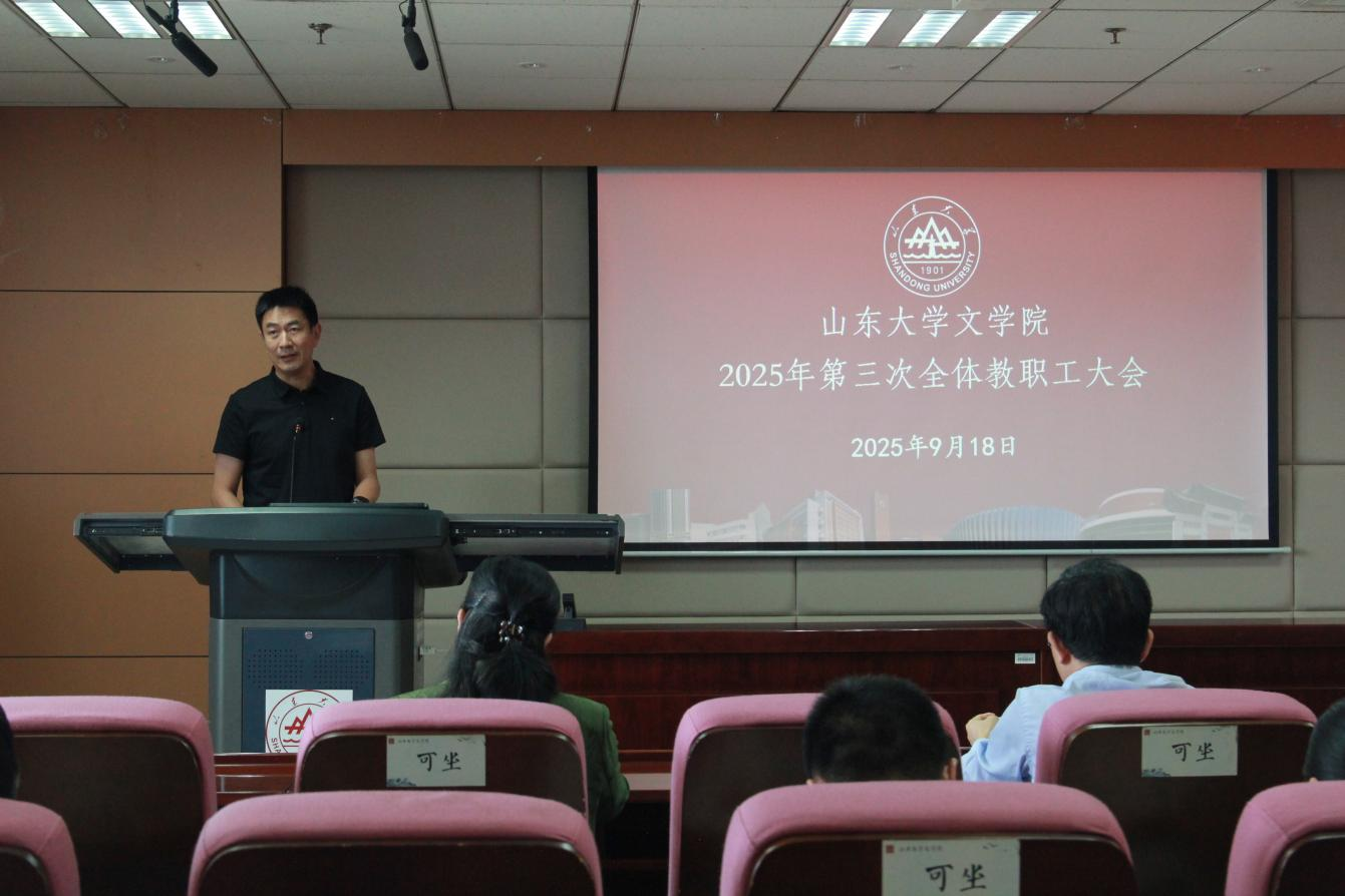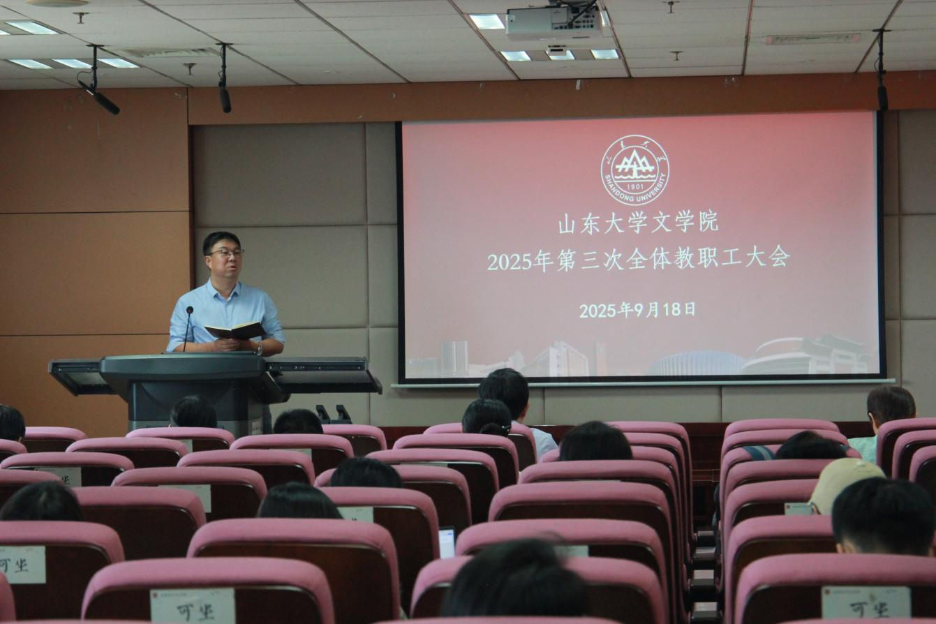 9月18日下午,248cc永利集团于知新楼A620召开2025年第三次全体教职工大会。本次会议由院党委书记郭春晓主持。院长黄发有,常务副院长马兵,院党委副书记王萌、杨俊娇,副院长杨建刚、樊庆彦、王辉,副处级组织员沈文以及全体教职工参加会议。
