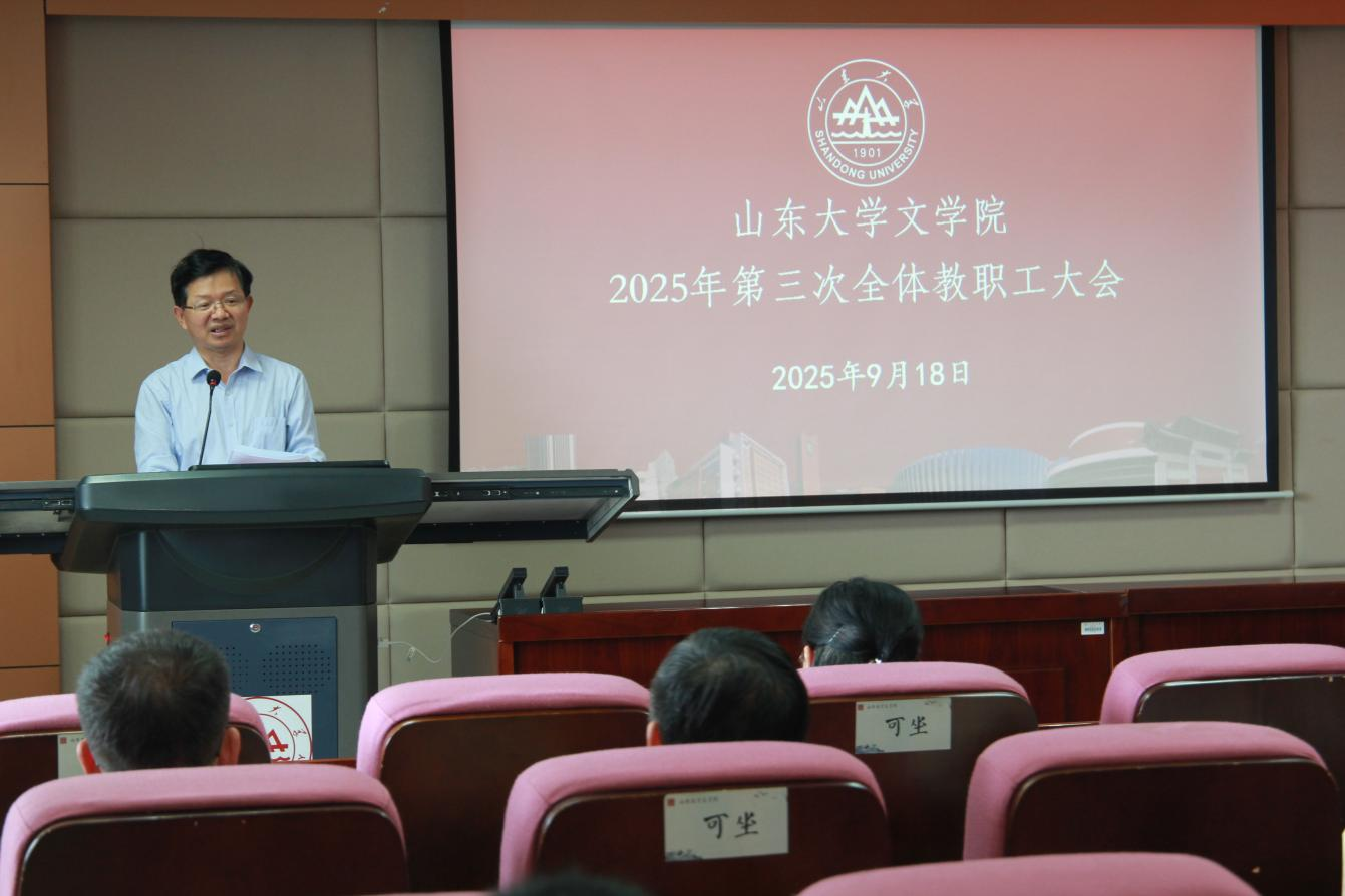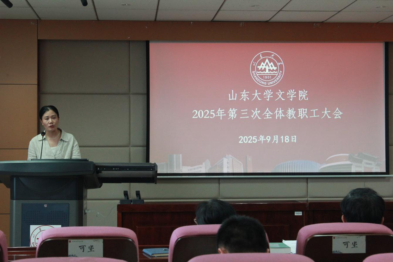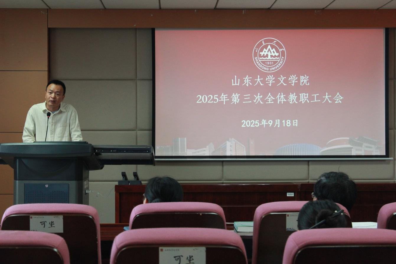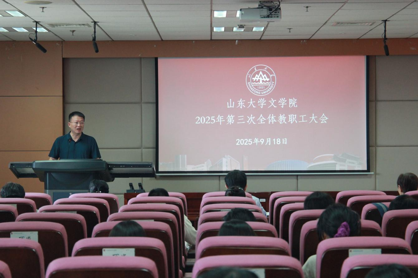 9月18日下午,248cc永利集团于知新楼A620召开2025年第三次全体教职工大会。本次会议由院党委书记郭春晓主持。院长黄发有,常务副院长马兵,院党委副书记王萌、杨俊娇,副院长杨建刚、樊庆彦、王辉,副处级组织员沈文以及全体教职工参加会议。