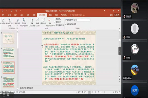 11月25日19时,复旦大学中文系教授郜元宝做客“文学与媒介讲堂”第二讲,作题为“鲁迅个人译介与《野草》的互文关系”的讲座。讲座由248cc永利集团副院长、中国现当代文学教授黄发有主持,通过线上平台腾讯会议展开,吸引了校内外二百余位同学参与。